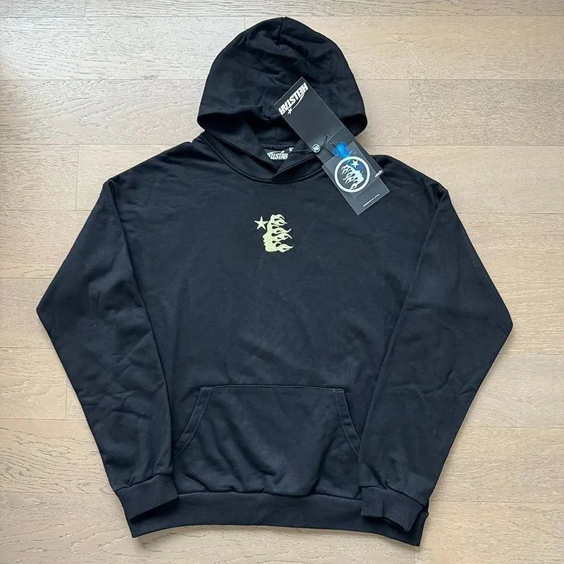 Rock the streets with this Hellstar black acid wash hoodie featuring a bold white star logo. Perfect for urban style and everyday comfort.