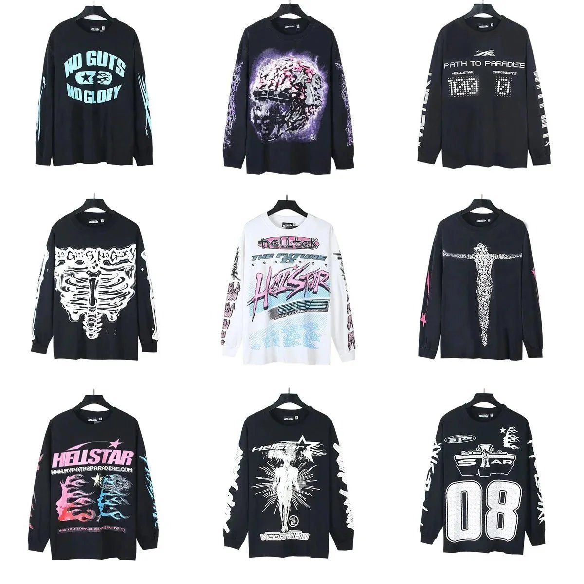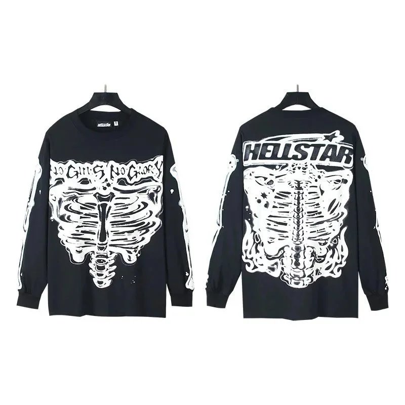 Explore the bold and edgy Hellstar long sleeve graphic tees featuring surreal art, skeleton prints, and cyberpunk themes for a standout streetwear look.