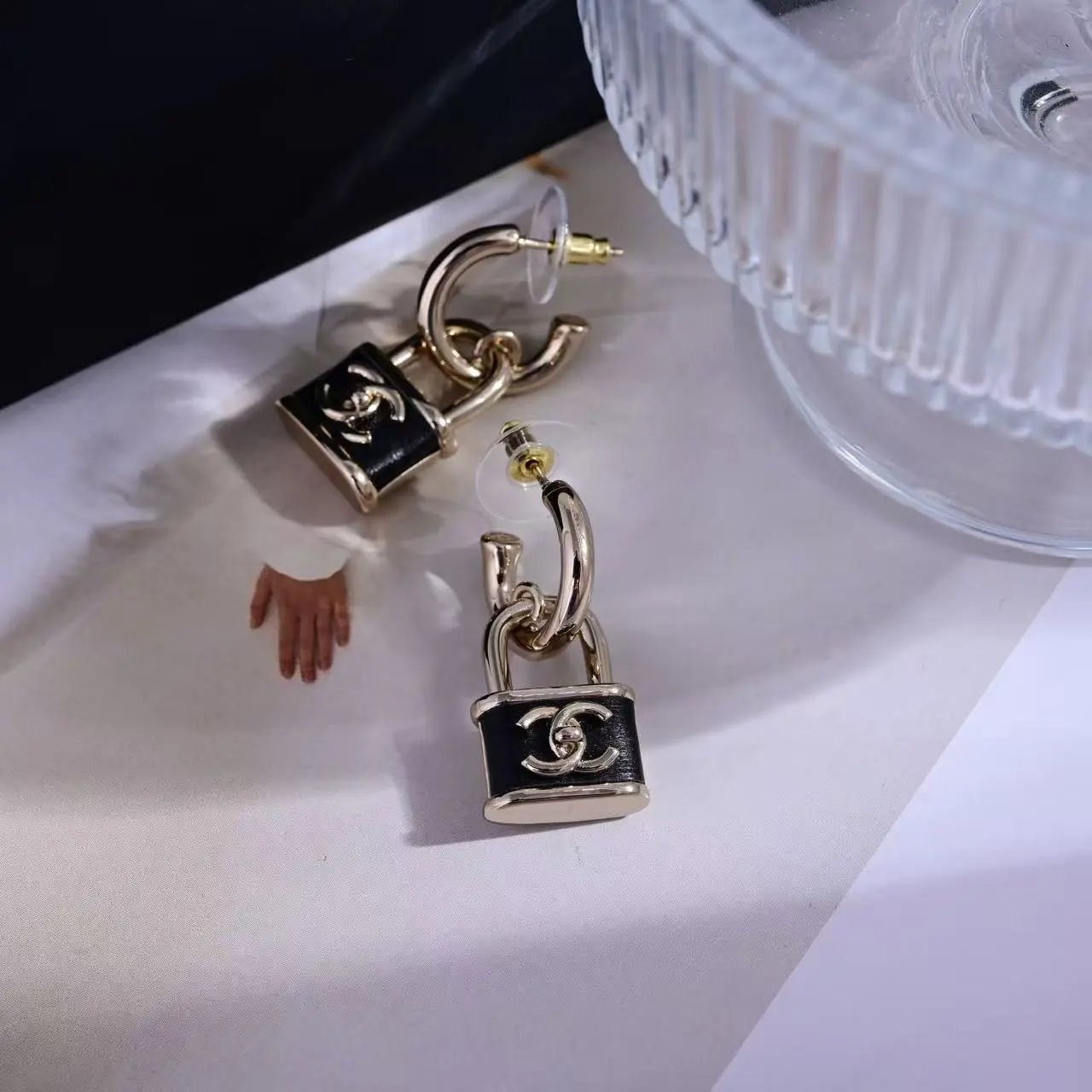 Stylish black enamel LV logo stud earrings crafted with S925 sterling silver posts. Perfect for fashion-forward individuals seeking bold, iconic branding in minimalist jewelry.