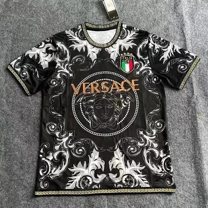 Discover the exclusive Italy national team jerseys designed by Versace, featuring bold patterns, iconic Medusa logo, and Italian cultural motifs. Perfect for fans seeking premium, statement-making soccer wear.
