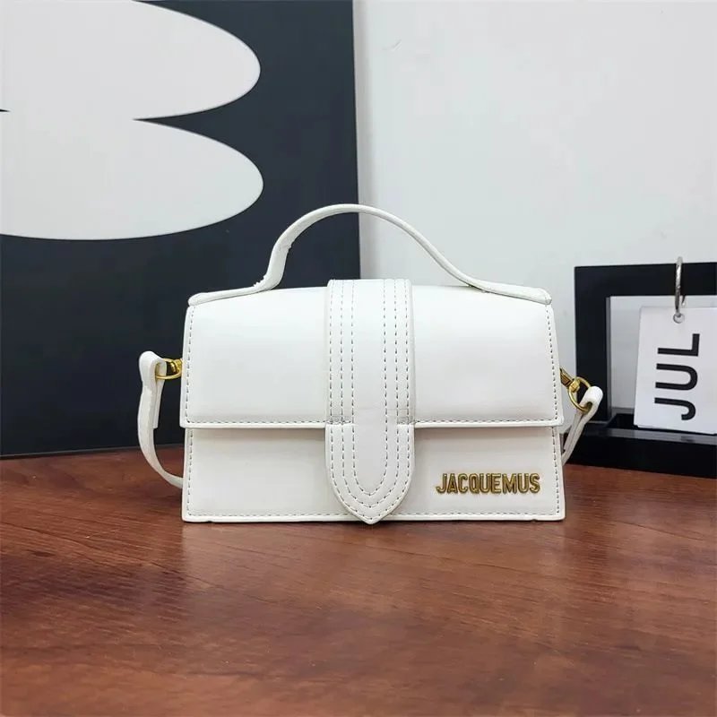 Elevate your style with the Jacquemus mini structured bag available in blue, black, white, and beige. Featuring a sleek design with gold-tone hardware and a signature logo, this versatile crossbody is perfect for everyday elegance.