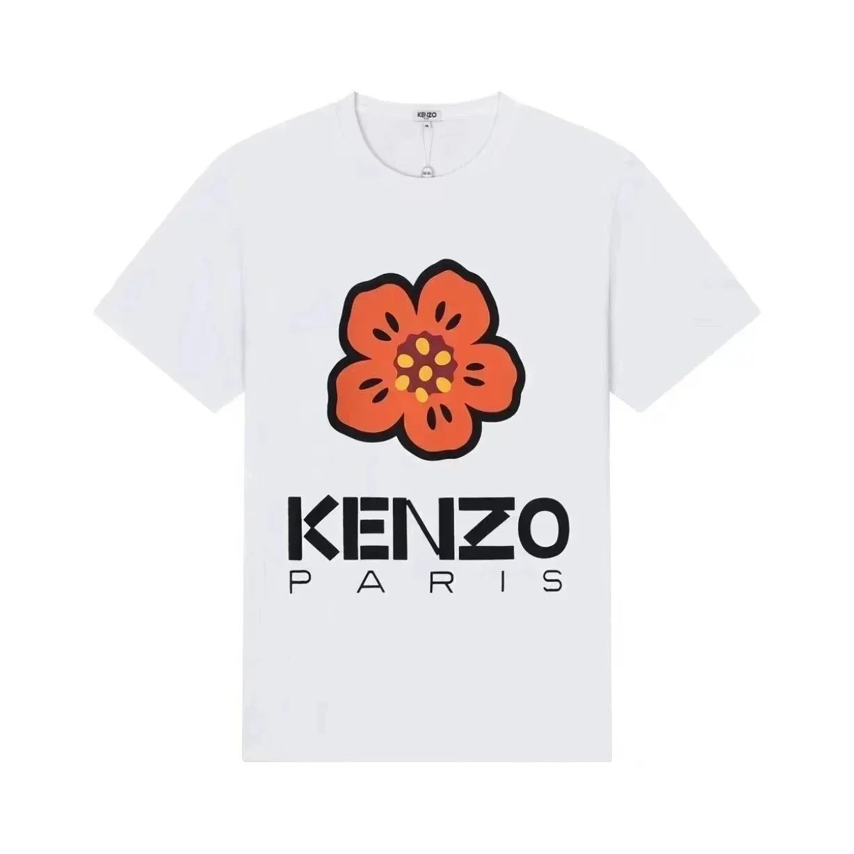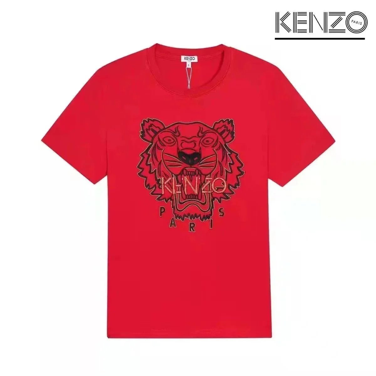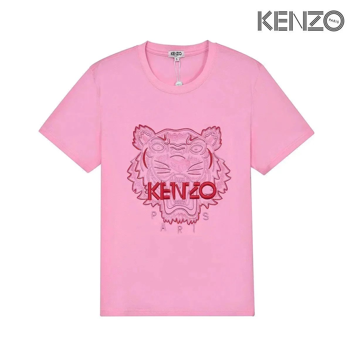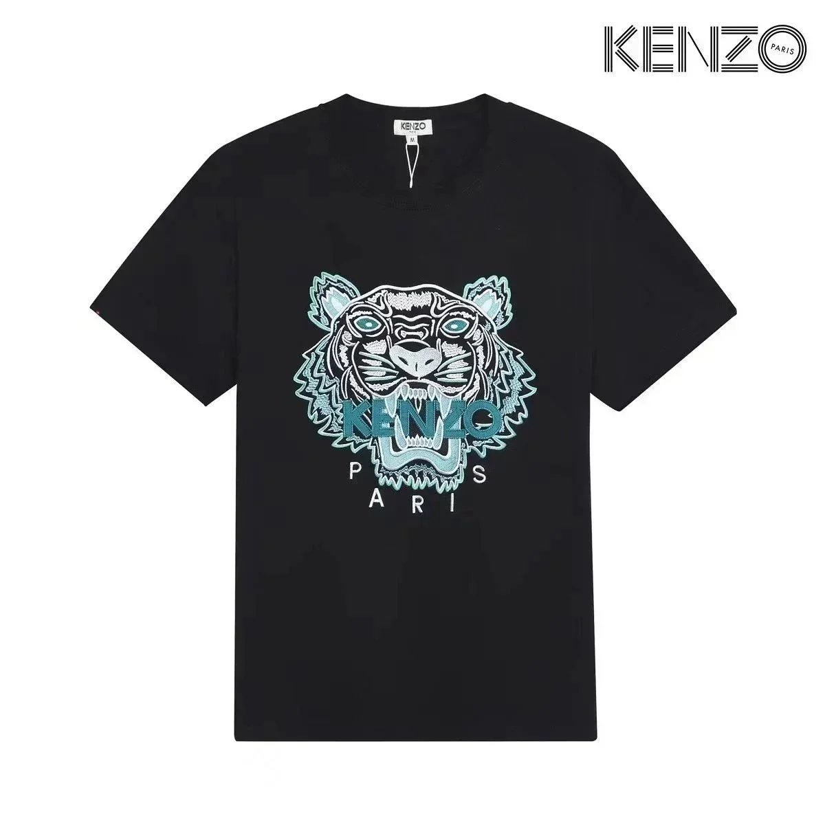 Discover KENZO's iconic t-shirts featuring embroidered tiger and flower motifs, available in white, black, and gray. Each piece showcases the brand's signature Paris branding and bold graphic designs.
