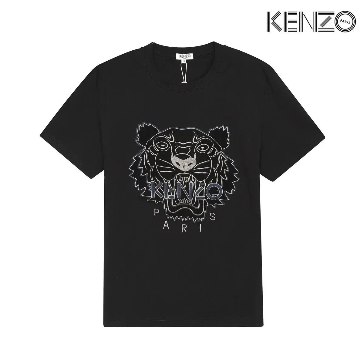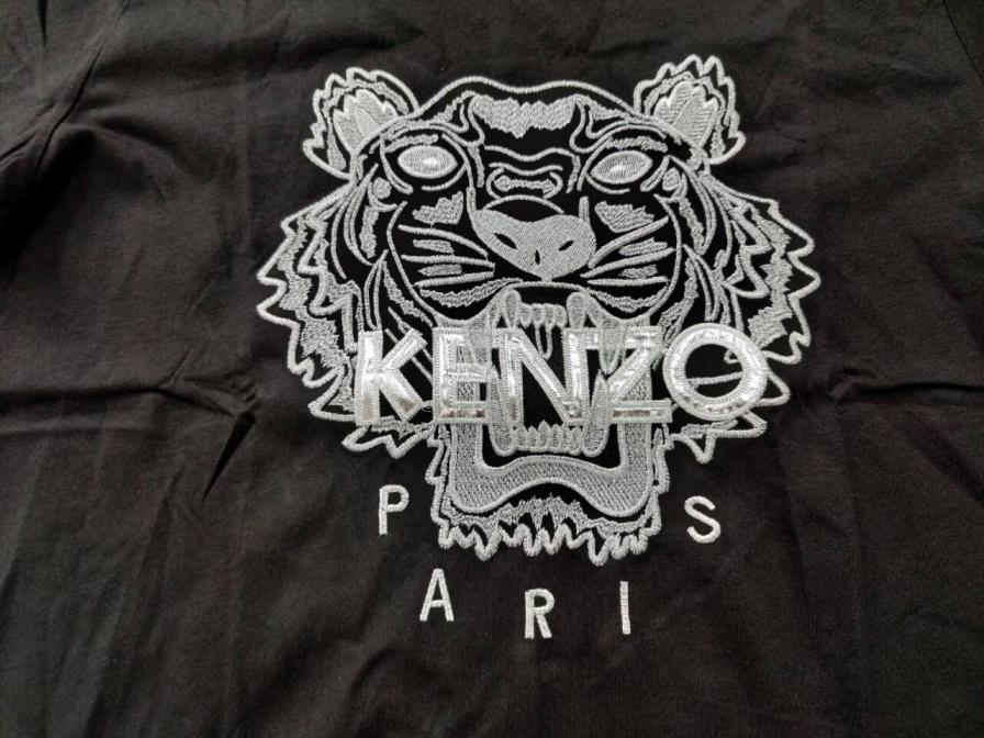 This black Kenzo t-shirt features a vibrant, detailed tiger embroidery with 'KENZO PARIS' text. A bold statement piece for casual or urban wear.