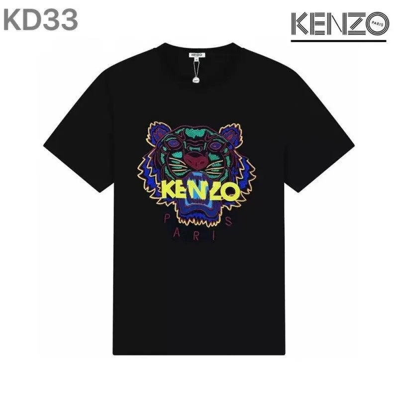 Discover the iconic KENZO tiger graphic t-shirts featuring bold embroidery and 'PARIS' branding. Available in multiple colors and designs for a statement look.