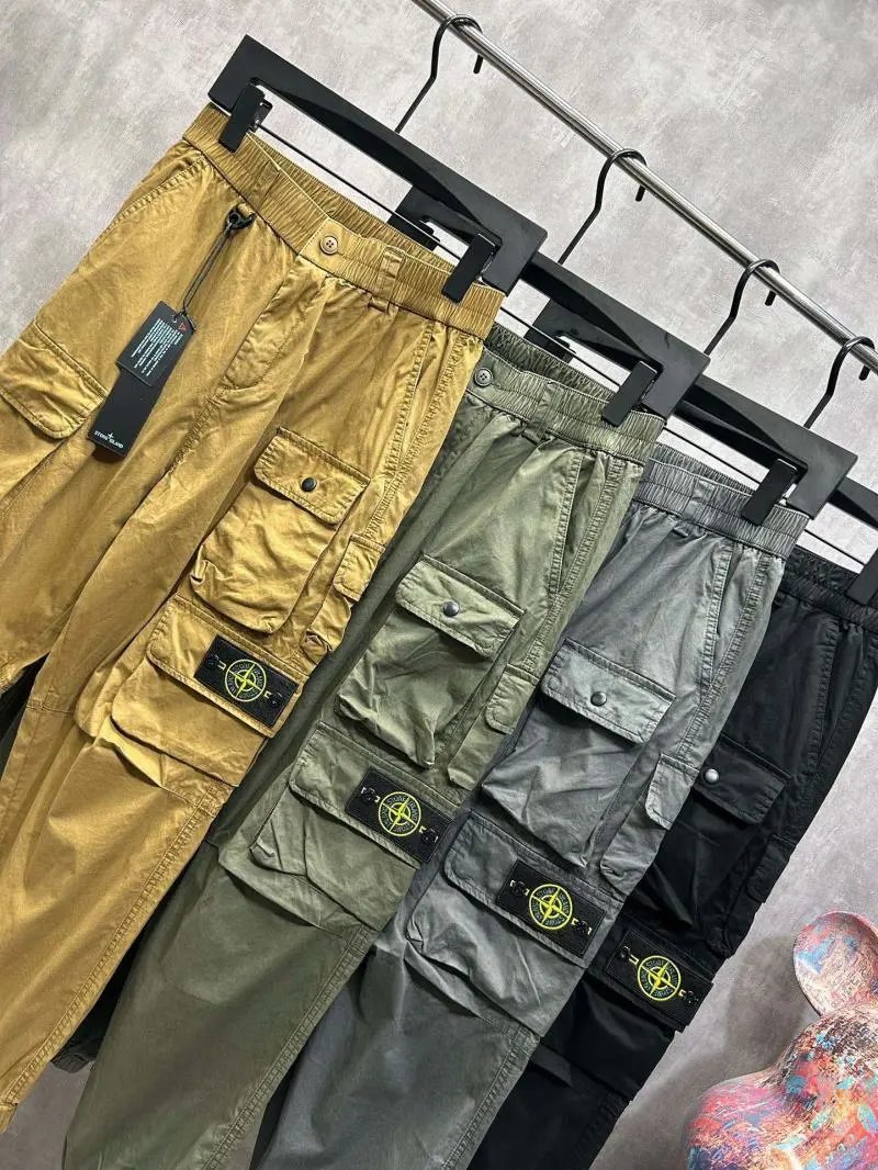 Stylish black cargo joggers featuring a bold logo patch and functional pockets. Perfect for casual outings and urban fashion.