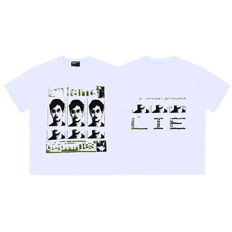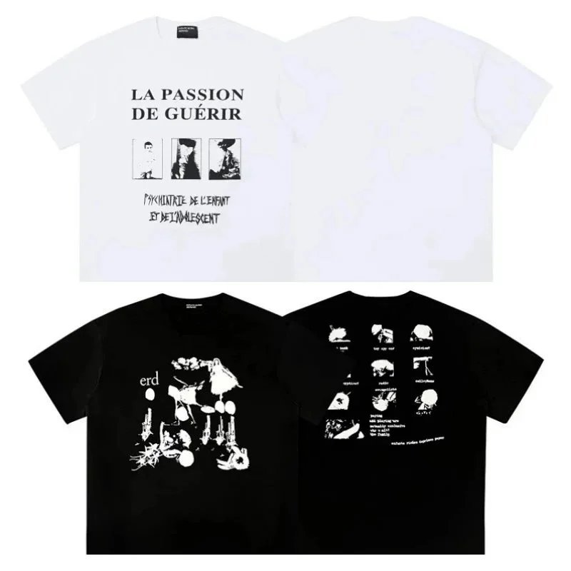 Featuring bold French text and surreal psychiatric-themed graphics, this t-shirt collection combines intellectual art with urban streetwear style. Available in white and black variants with detailed back prints.