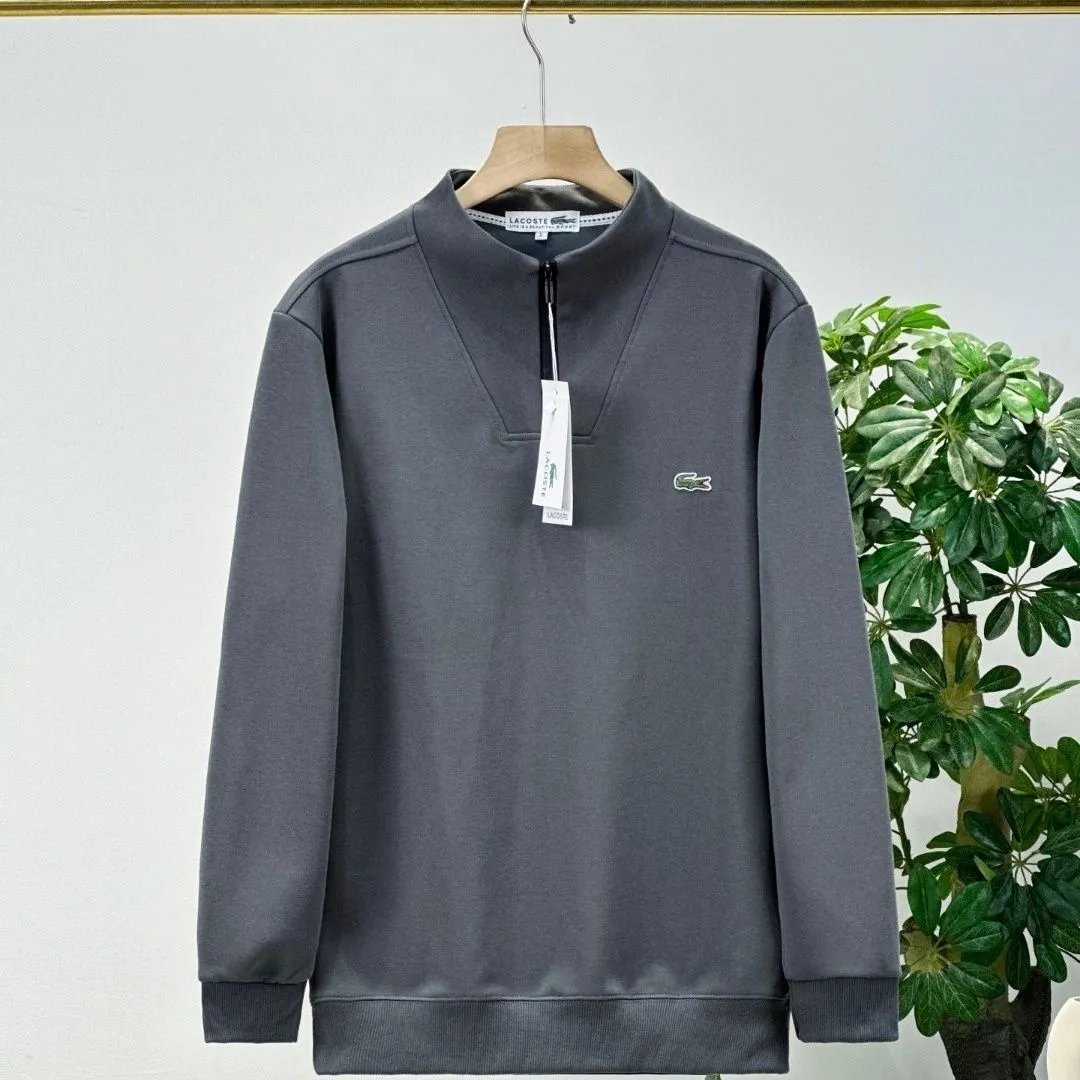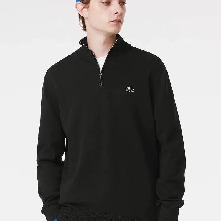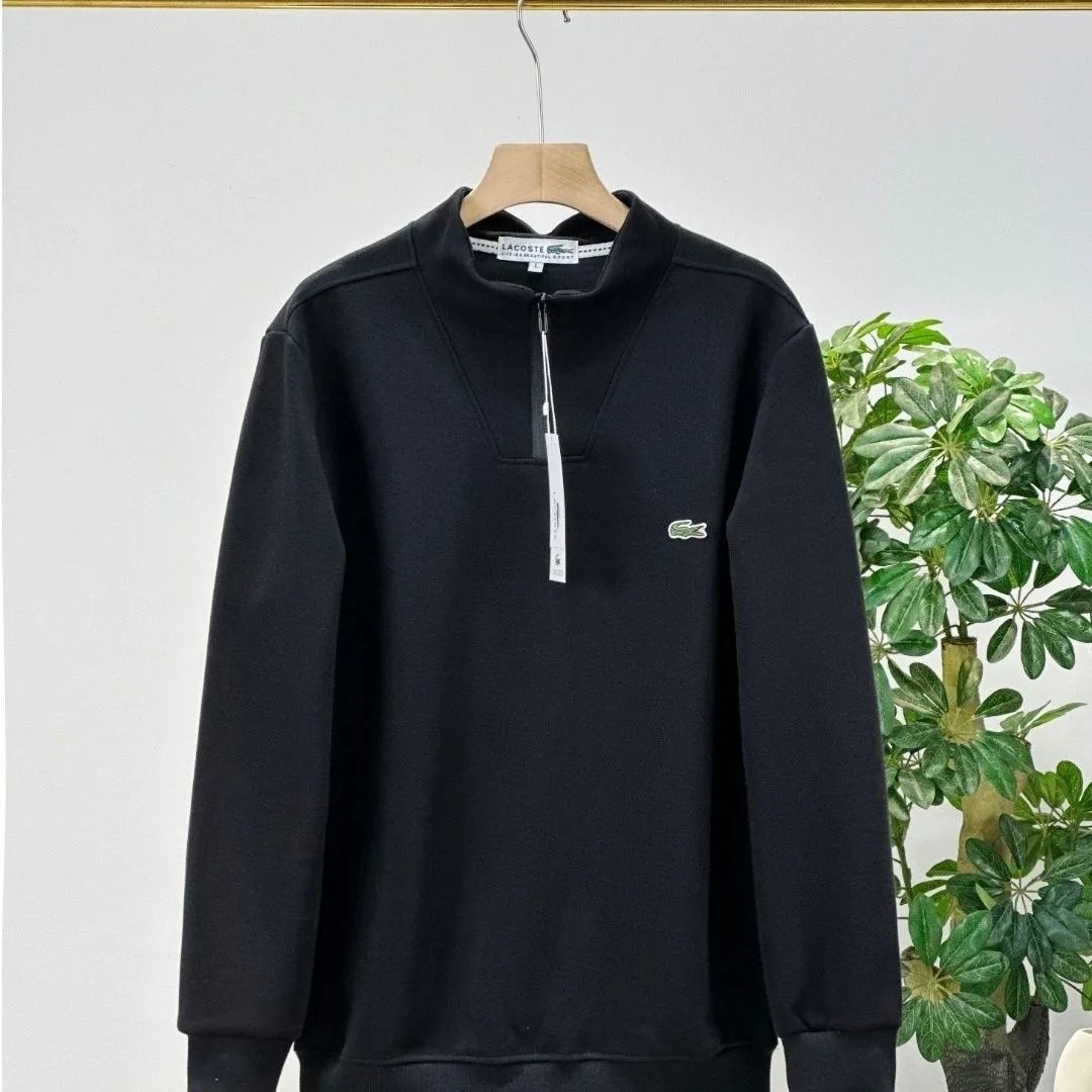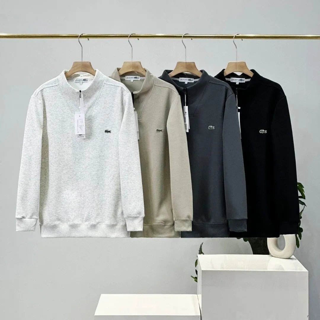 Elevate your casual wardrobe with this premium Lacoste half-zip sweatshirt in soft beige, featuring the iconic crocodile logo and ribbed cuffs for timeless comfort and style.