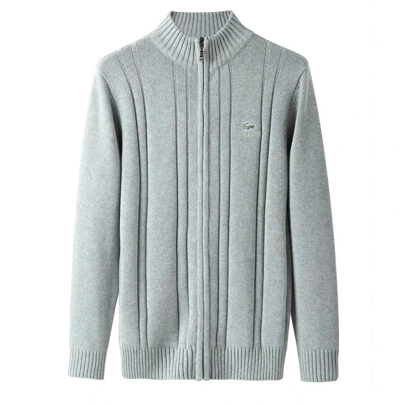 Shop Lacoste’s classic gray knitwear collection featuring a crewneck sweater, ribbed zip-up sweater, and V-neck vest for refined everyday style.