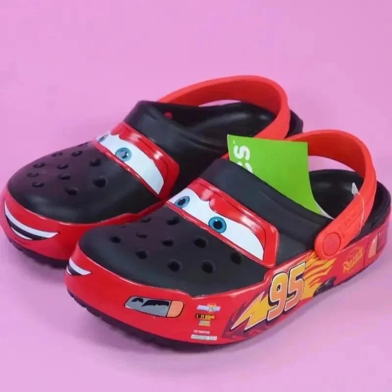 Bright red kids' crocs featuring Lightning McQueen from Disney Pixar's Cars. Perfect for young fans with fun character details and comfortable fit.
