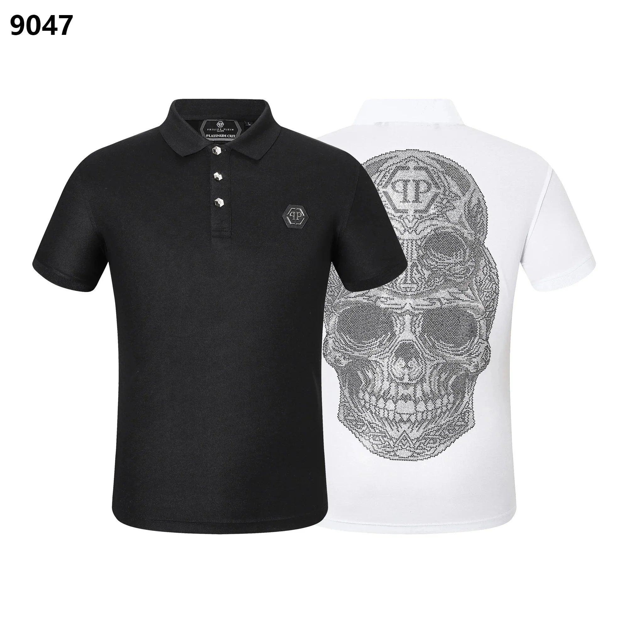 White polo shirt featuring a bold pixelated skull graphic on the back by Lil Skully. Ideal for casual wear with a distinctive streetwear aesthetic and detailed embellishment.