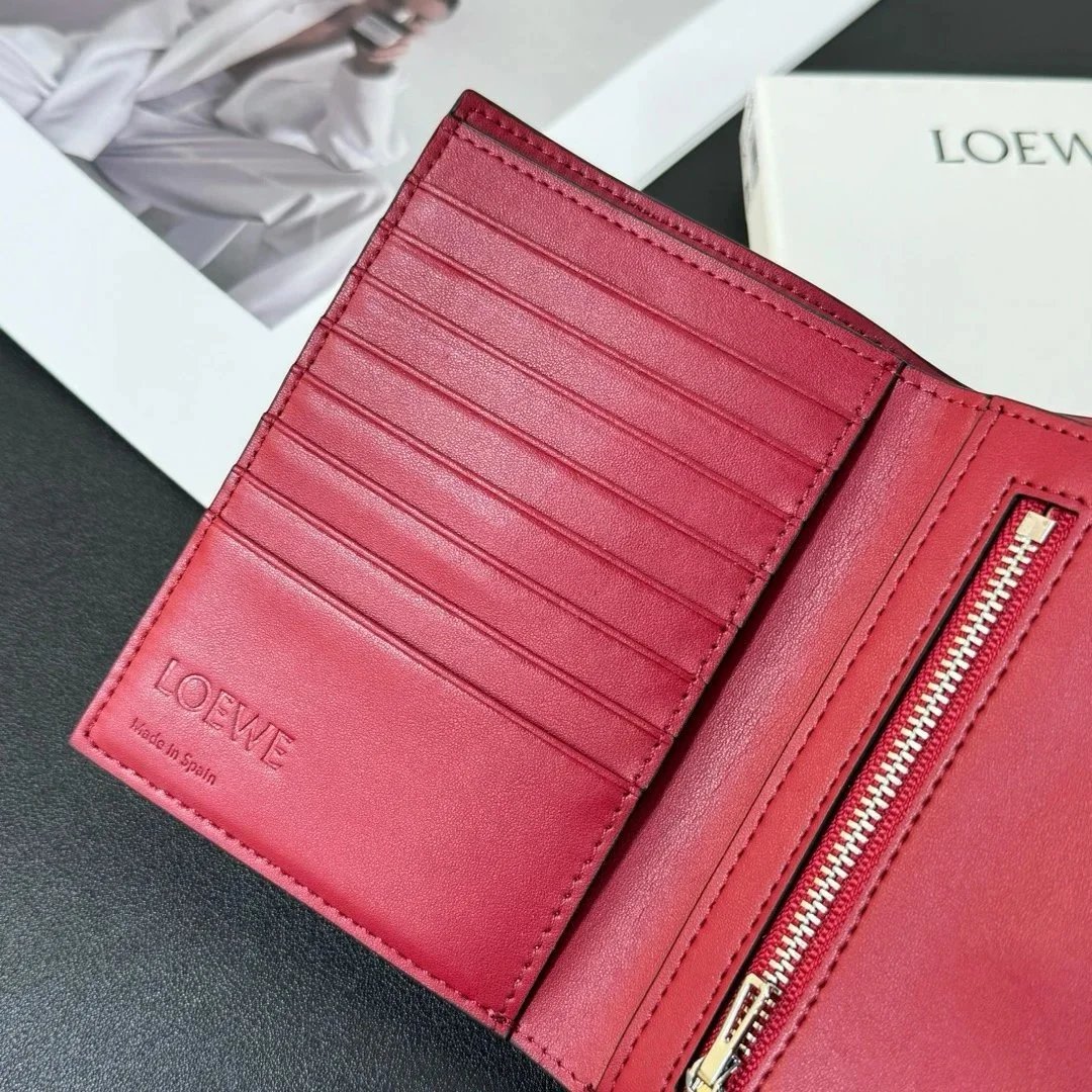 Elegant LOEWE tan leather wallet featuring a signature anagram strap closure. Crafted from premium pebbled leather, this sophisticated accessory combines timeless design with functional style.