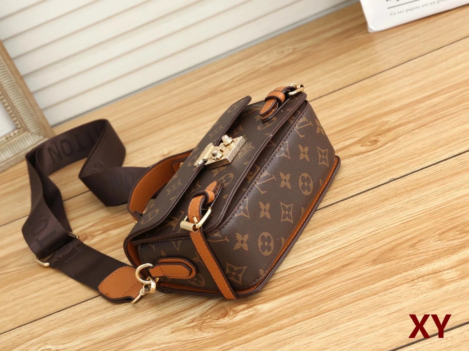 Elegant Louis Vuitton monogram crossbody bag in classic brown with gold-tone hardware. Perfect for everyday use or special occasions.