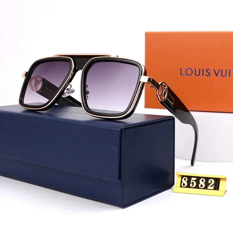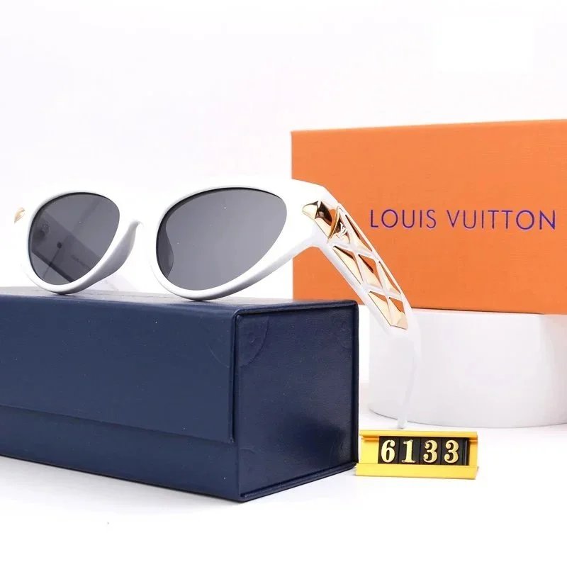 Elegant Louis Vuitton cat-eye sunglasses featuring a sleek black frame with distinctive gold geometric detailing on the temples. Perfect for luxury fashion enthusiasts seeking premium eyewear.