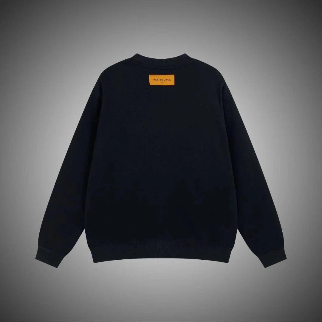Stylish black Louis Vuitton sweatshirt featuring a bold monogram logo graphic and text details. Ideal for casual luxury wear with iconic branding.