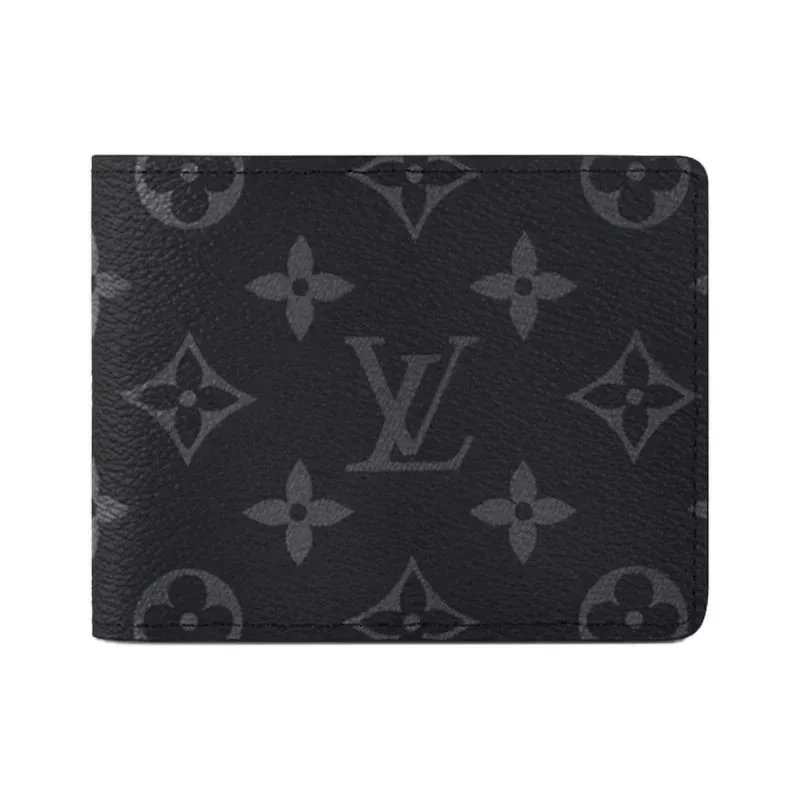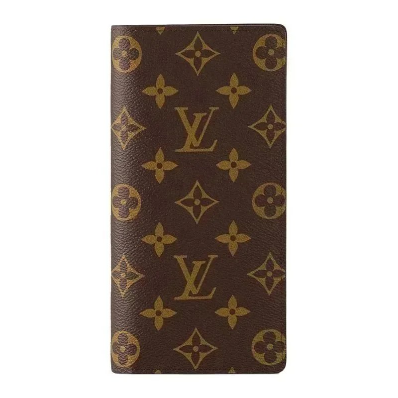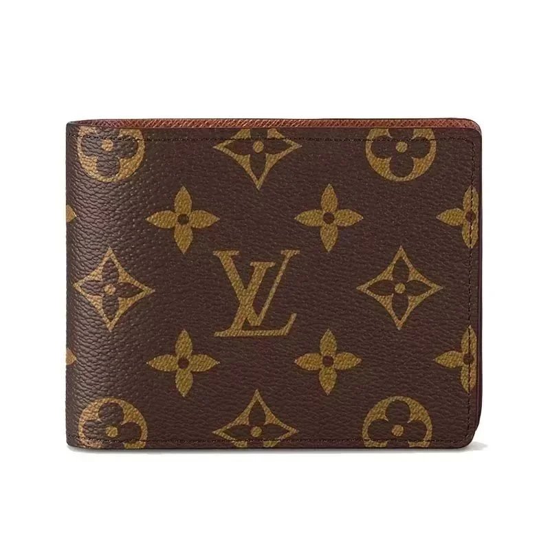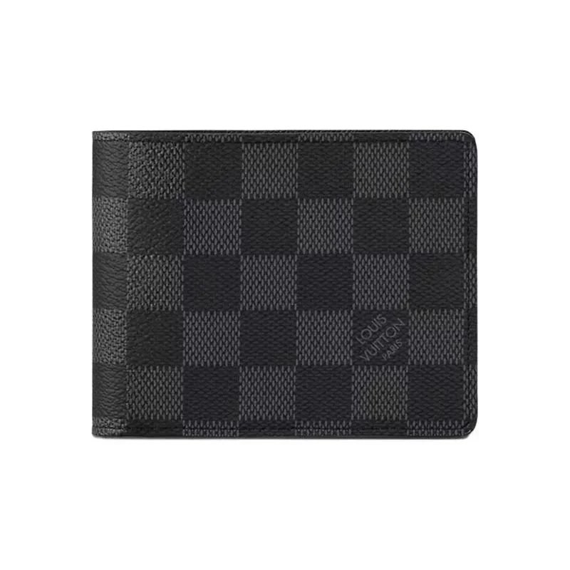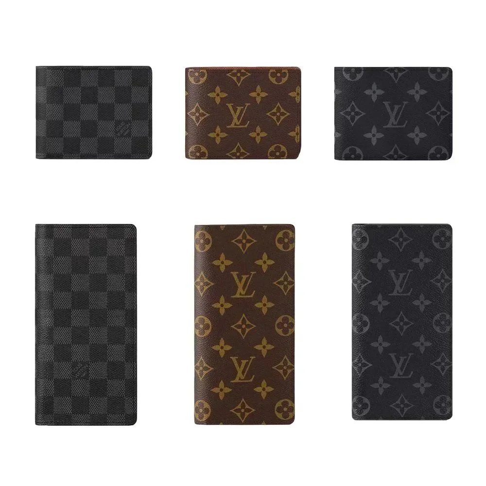 Premium Louis Vuitton wallet collection featuring iconic Damier and Monogram patterns in brown and gray check designs. Each wallet is presented in authentic branded packaging for gifting or personal use.