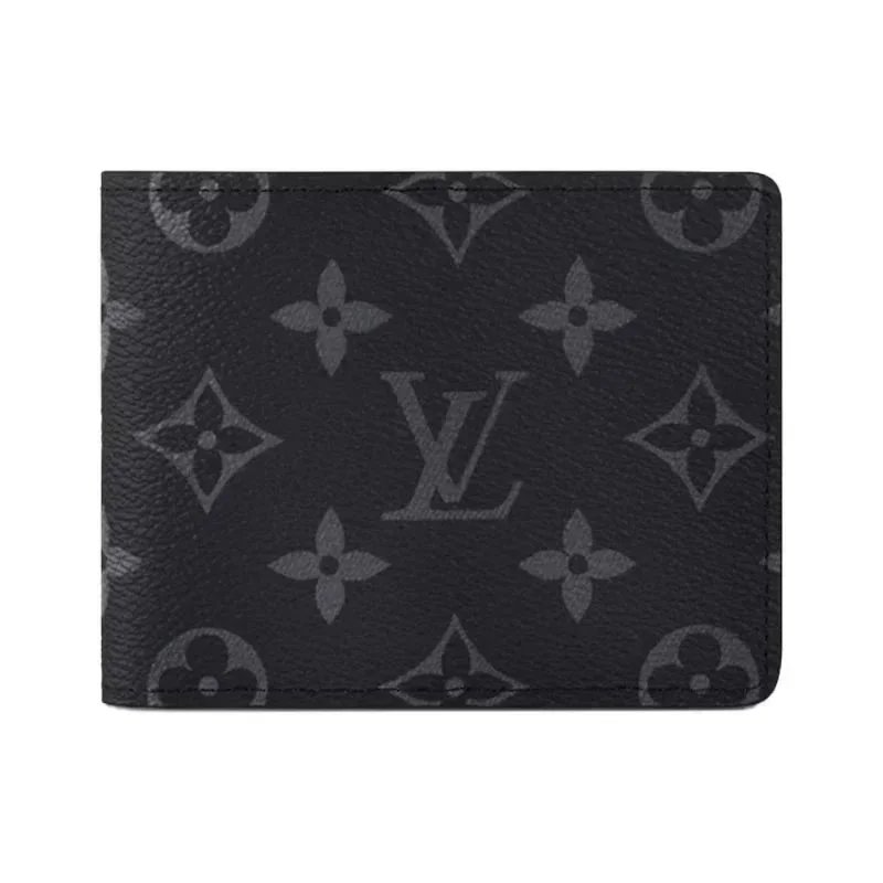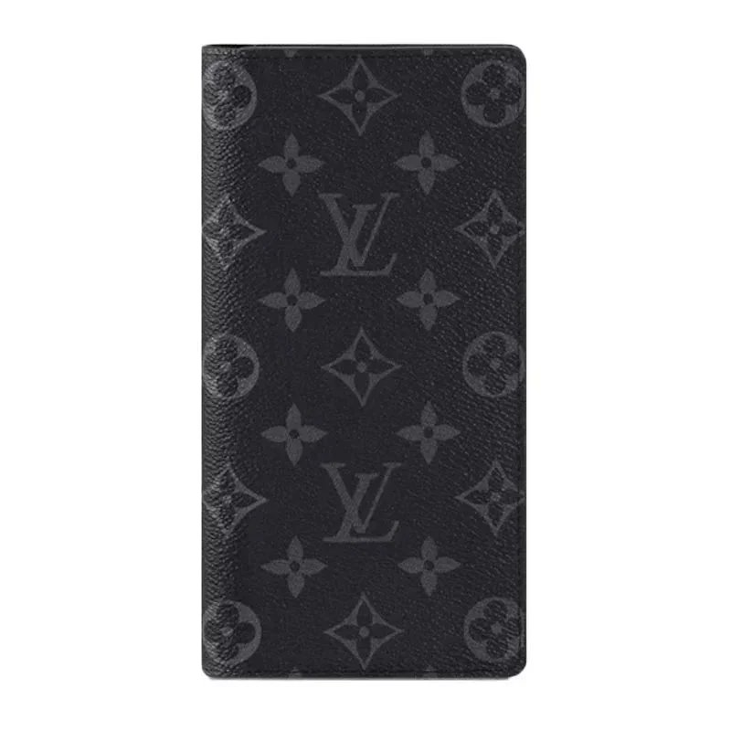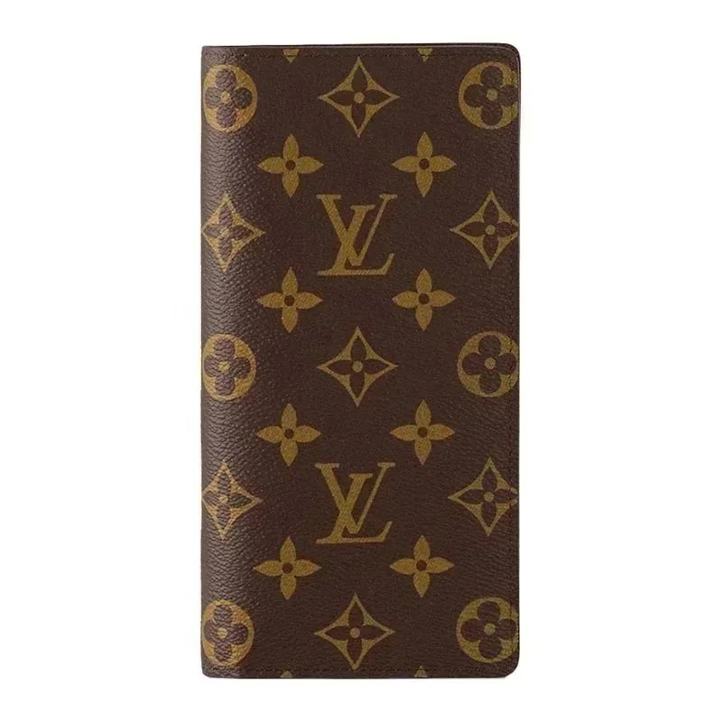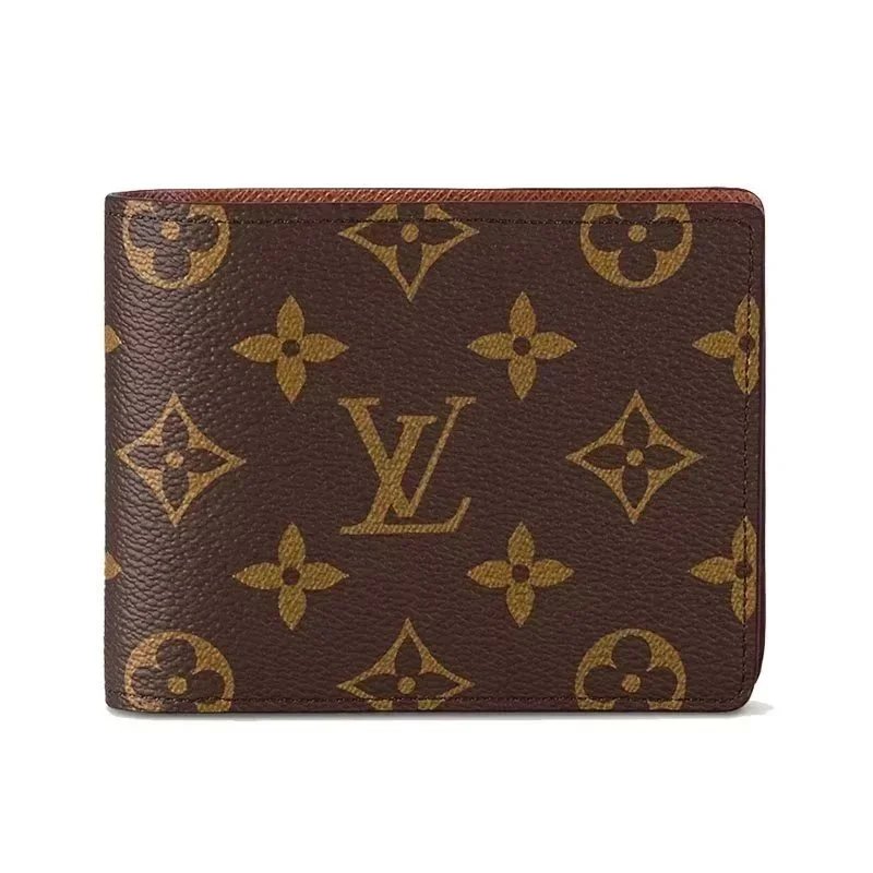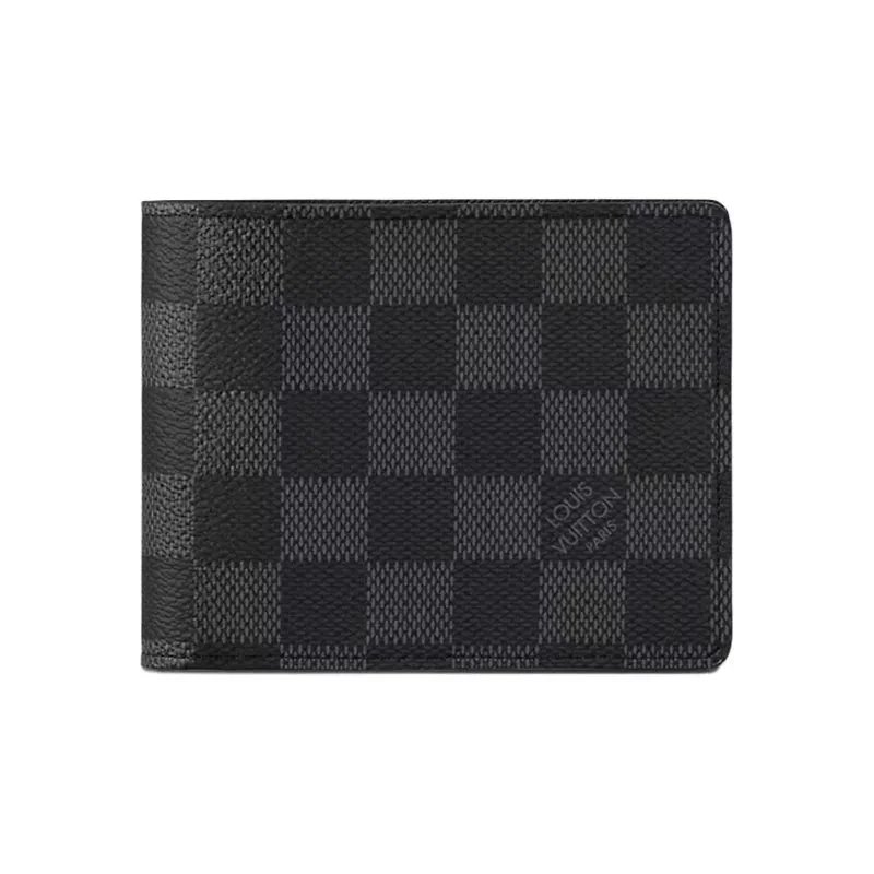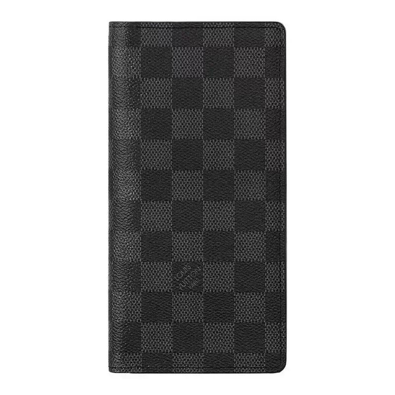 Luxury Louis Vuitton wallets featuring iconic monogram and checkered patterns in brown and grey. Each wallet is presented in official branded packaging for premium gifting or personal use.