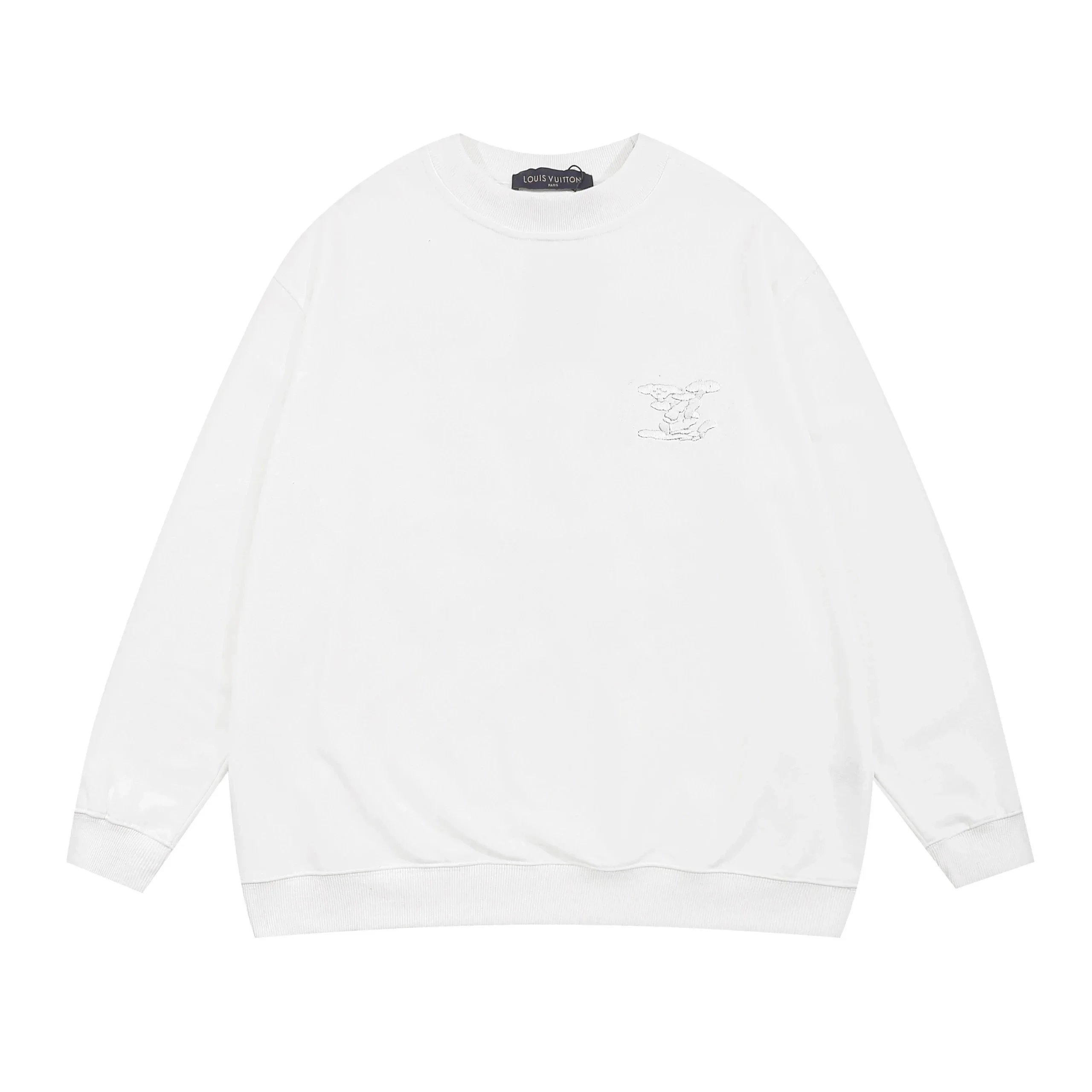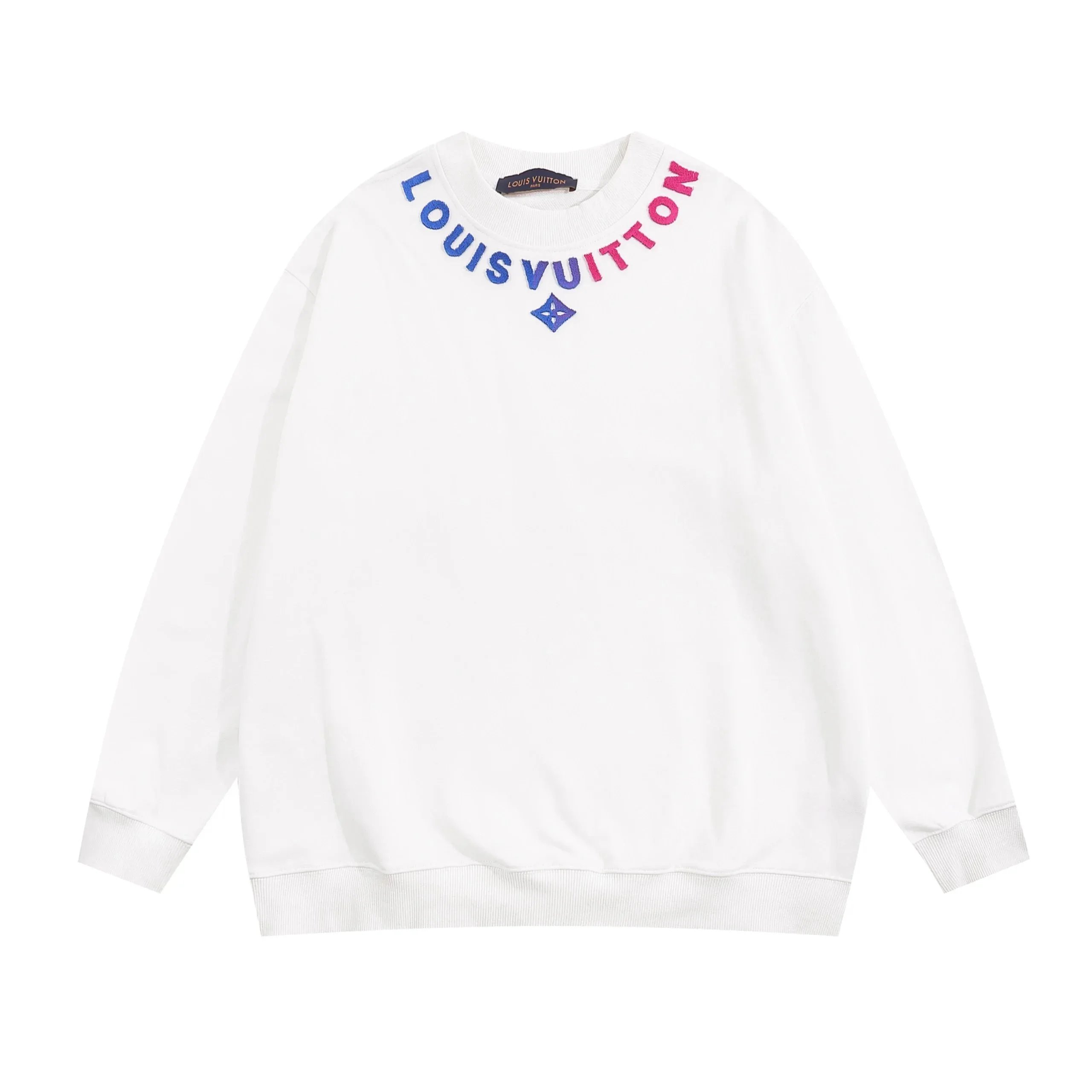 Elevate your wardrobe with this Louis Vuitton crewneck sweatshirt featuring a cosmic galaxy print and bold brand lettering.