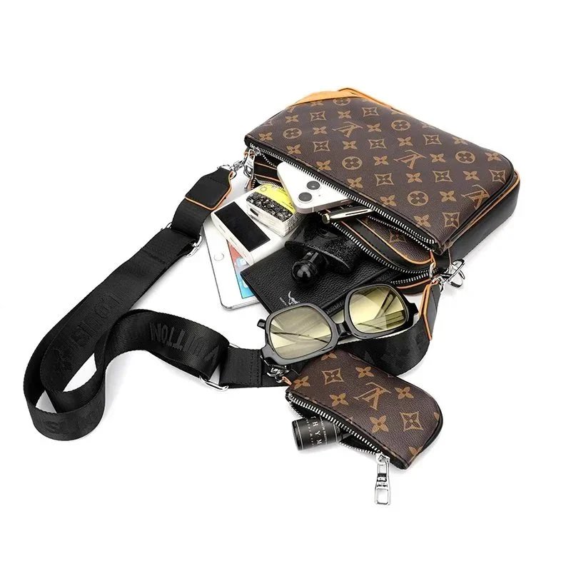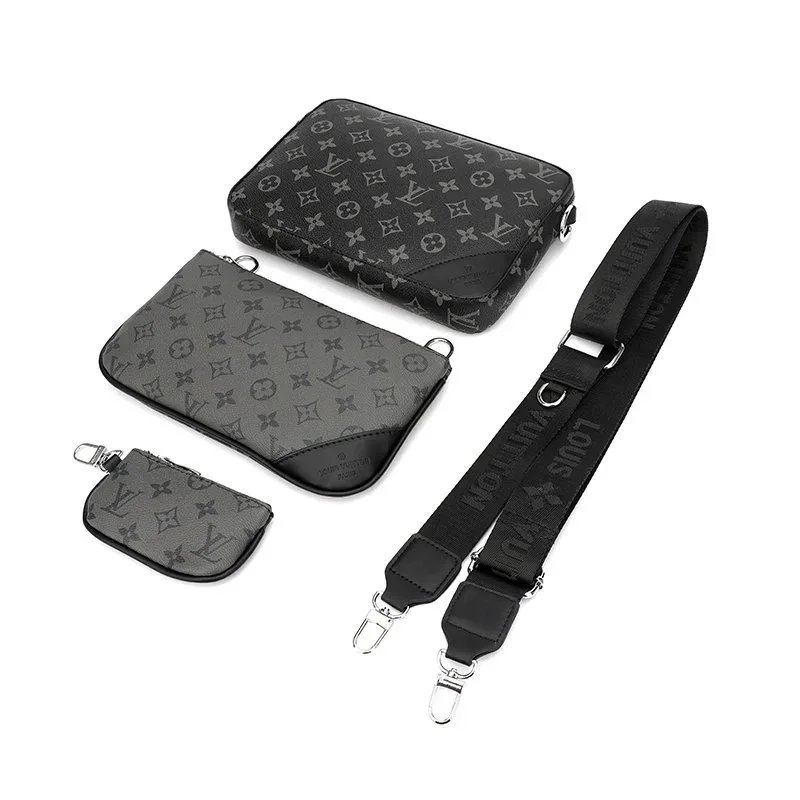 Elegant Louis Vuitton monogram crossbody bag in black with matching pouch. Perfect for everyday style and travel essentials.