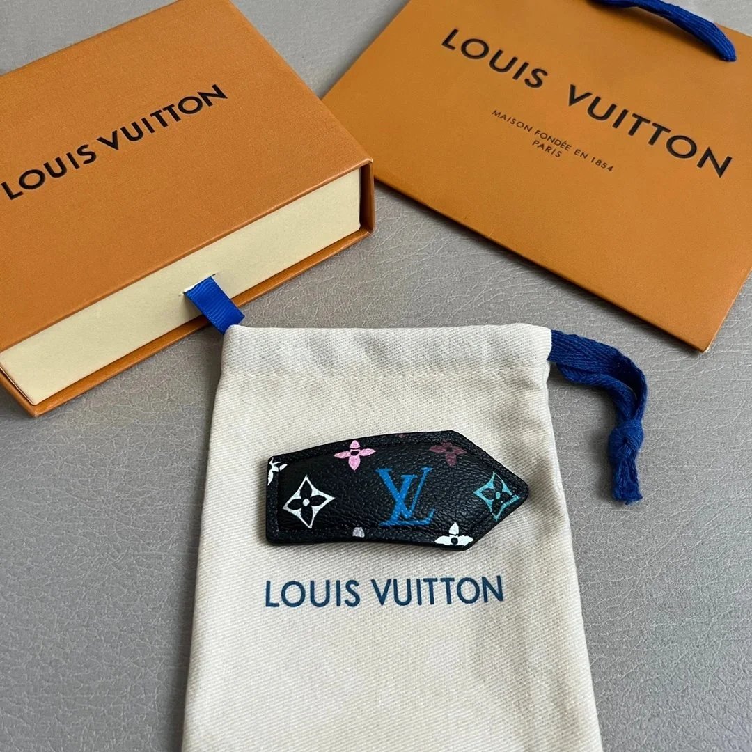 Elegant Louis Vuitton monogram hair clip featuring a vibrant multicolor design with iconic LV logo and floral patterns. Perfect for adding a touch of luxury to any hairstyle.