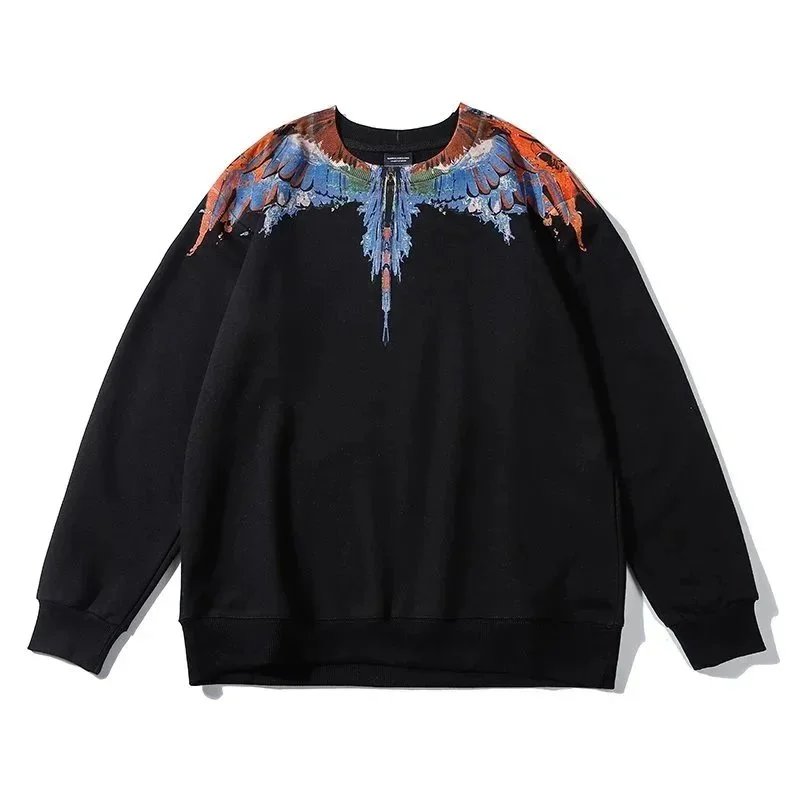 Shop iconic Marcelo Burlon wing hoodies featuring bold, colorful feather designs on premium black fabric. Perfect for streetwear lovers seeking high-fashion statement pieces.