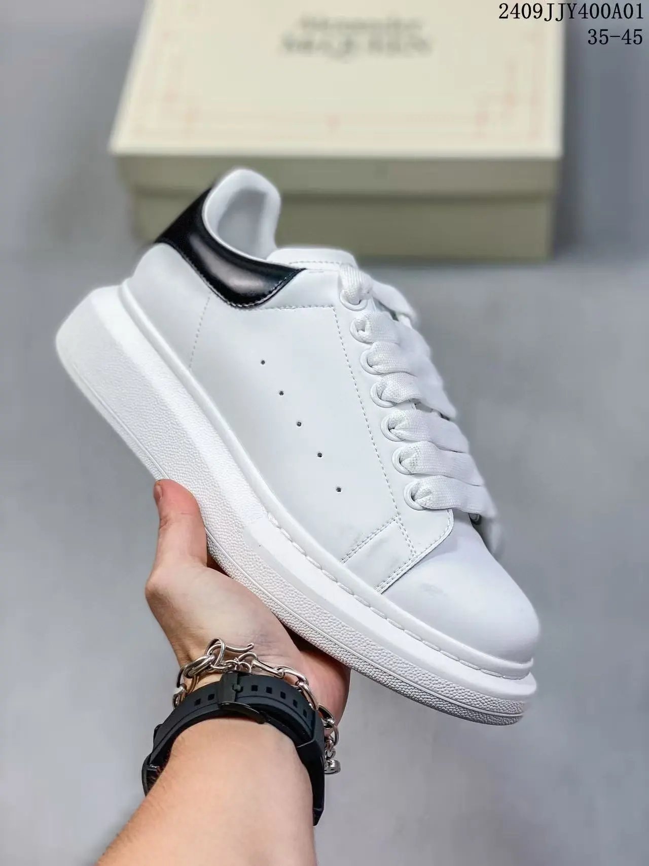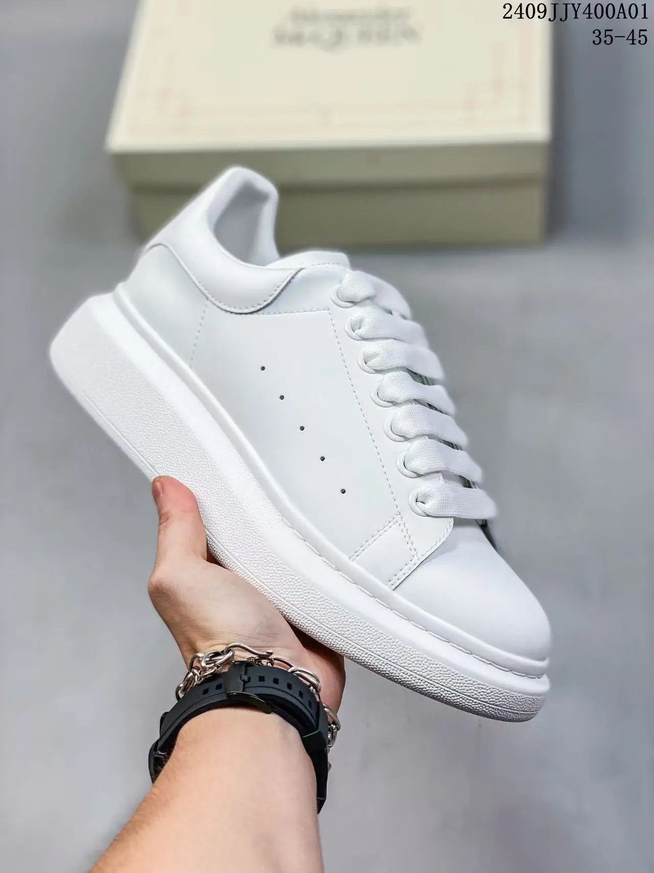 Step into bold style with McQueen's iconic oversized logo sneakers. Designed for comfort and statement-making looks, these platform sneakers elevate any casual outfit.