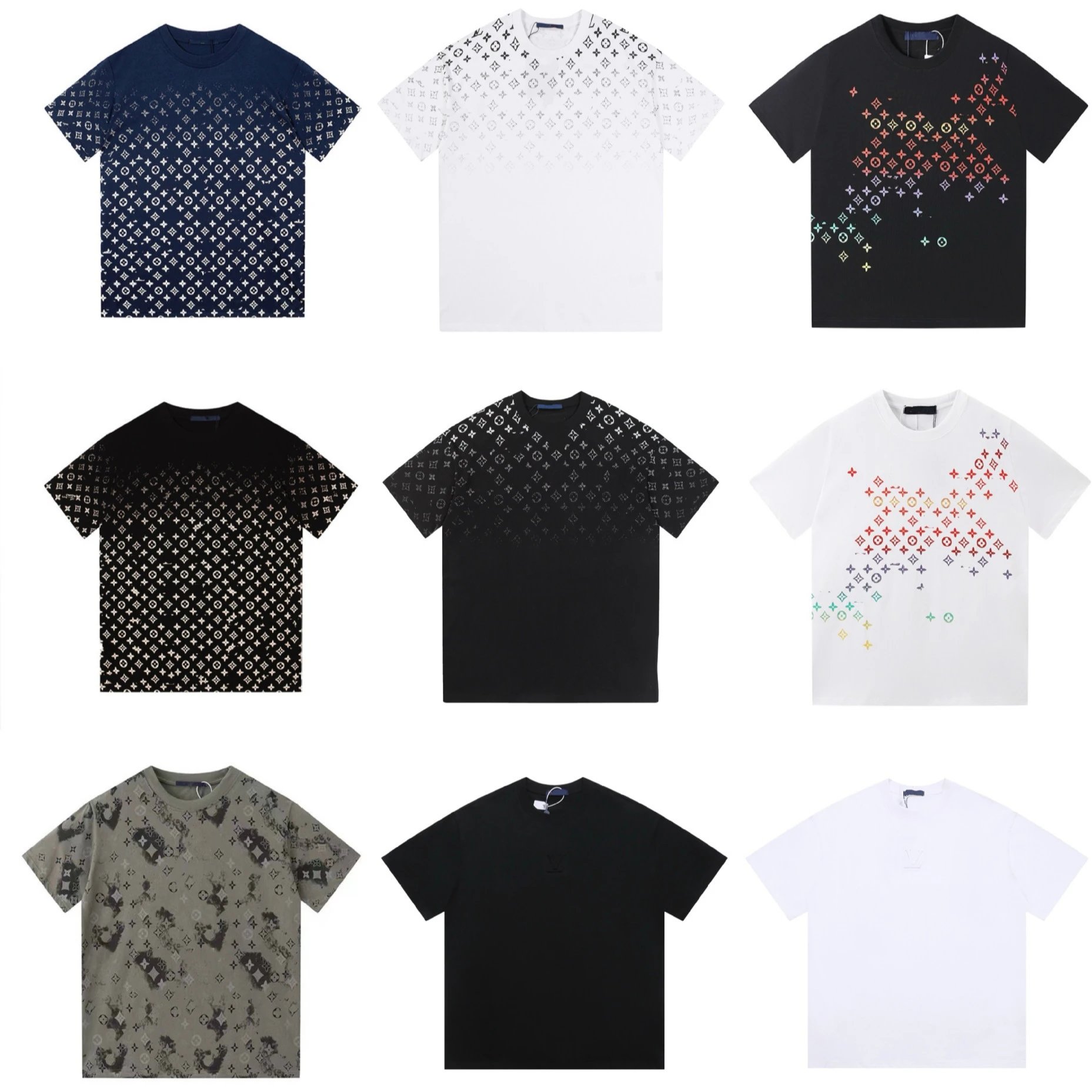 Explore detailed size charts for a variety of men's patterned t-shirts in multiple colors and designs. Ideal for online shoppers needing precise measurements before purchase.