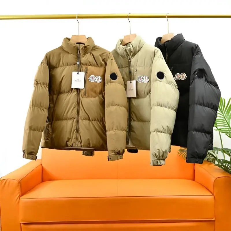 Stylish and warm MONCER hooded puffer jackets in assorted colors including white, green, blue, pink, and black. Perfect for cold weather with lightweight insulation and modern design.