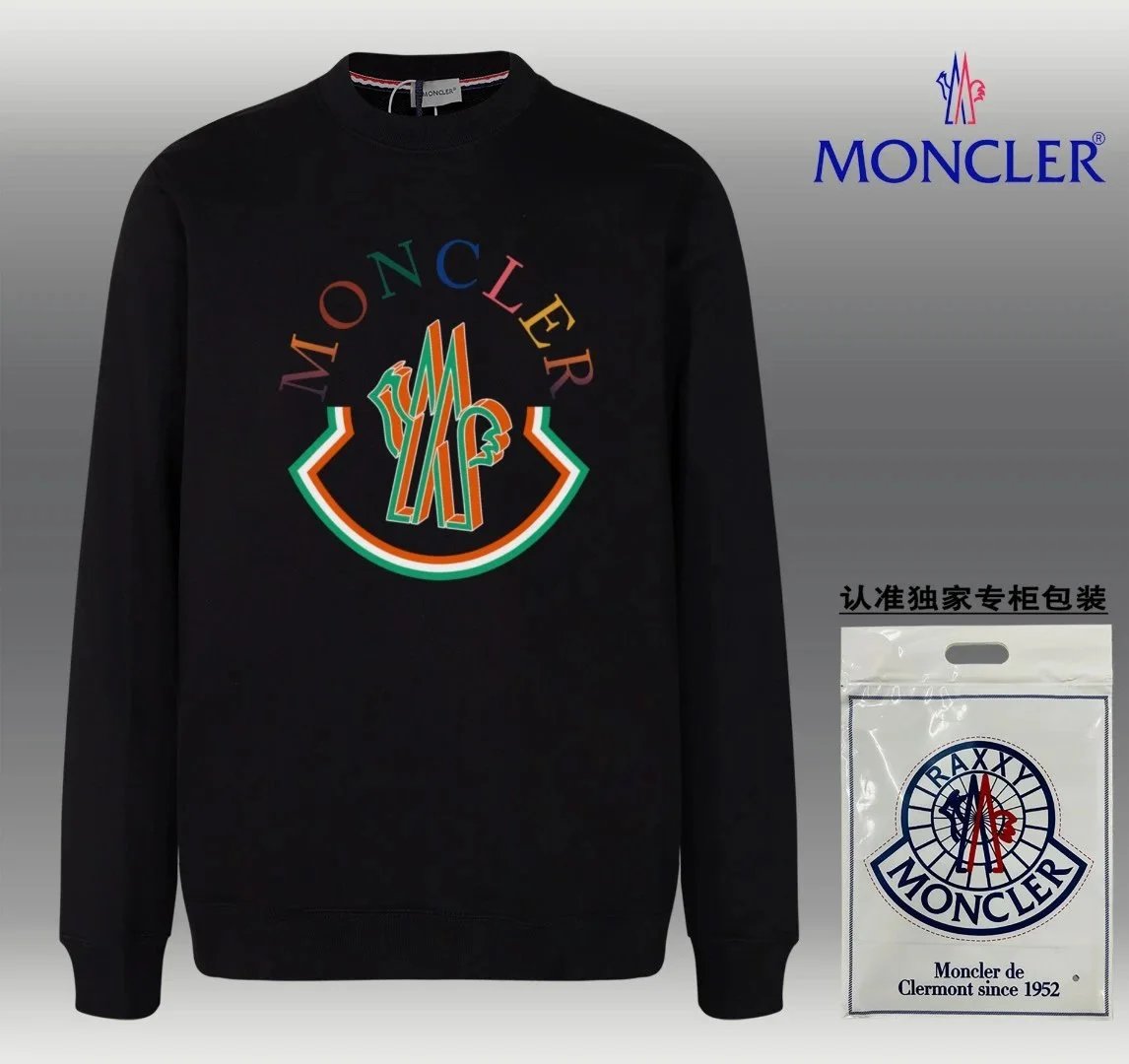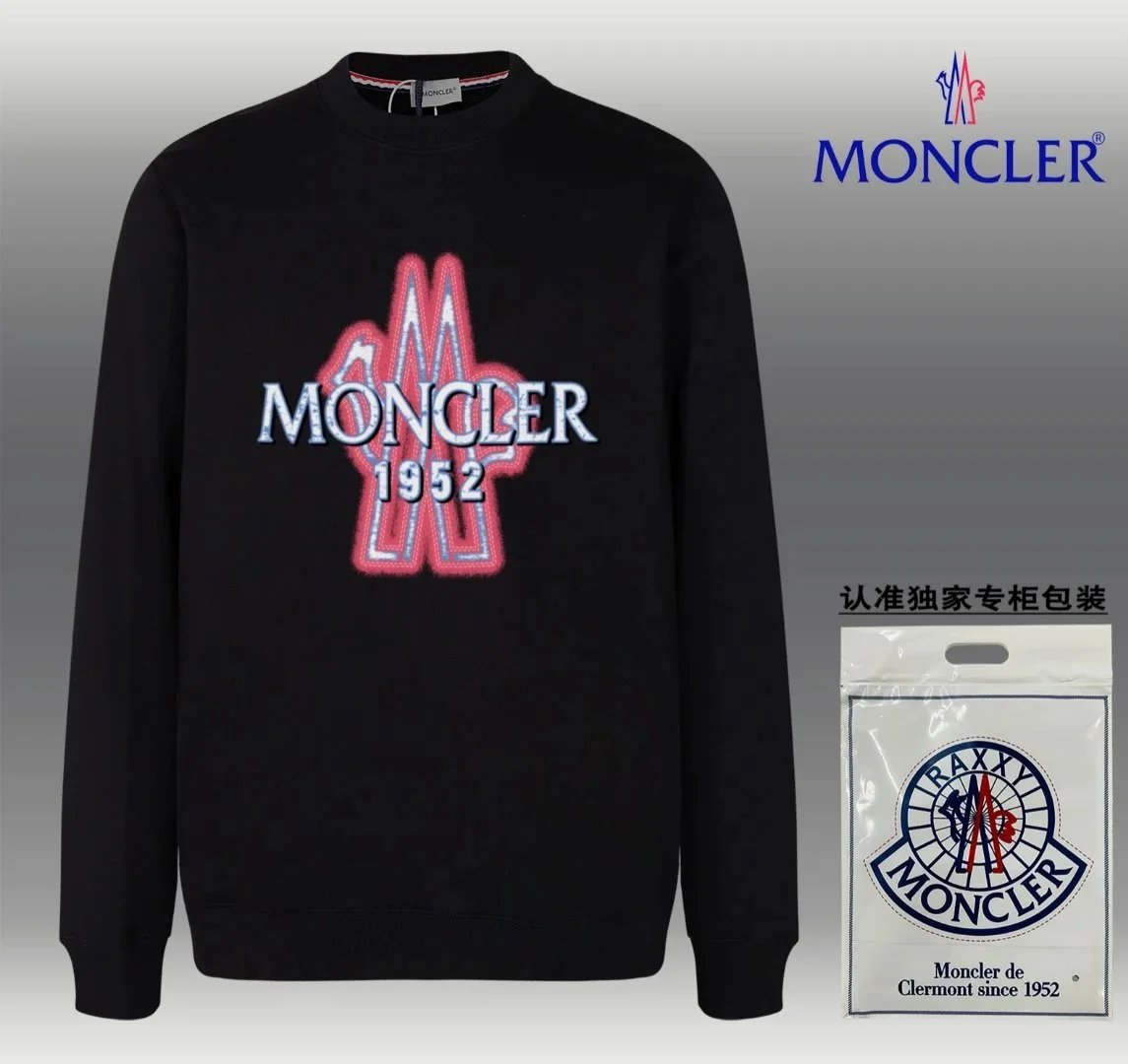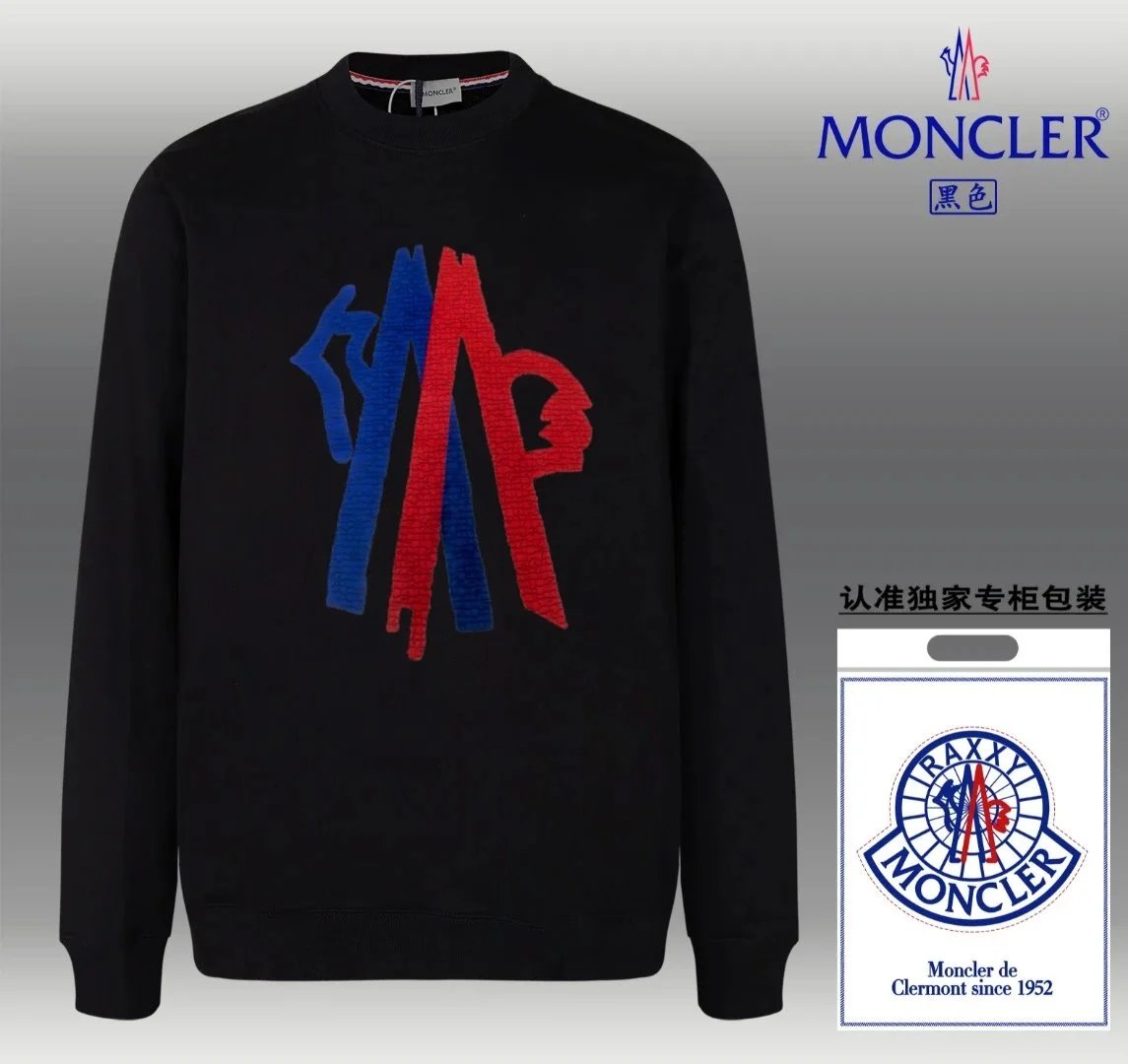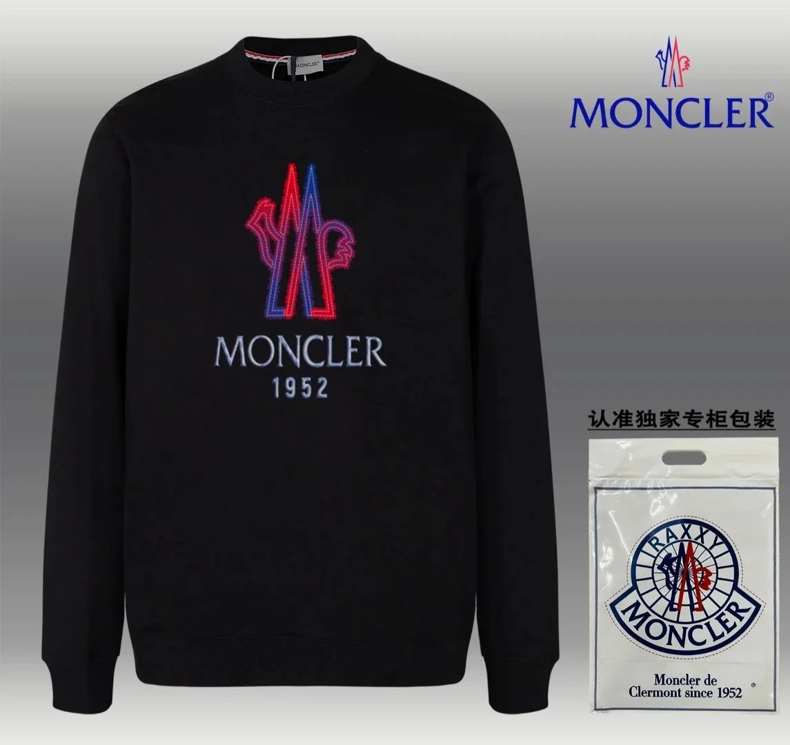 Elevate your wardrobe with this authentic Moncler black crewneck sweatshirt featuring a bold embroidered logo. Crafted for comfort and style.