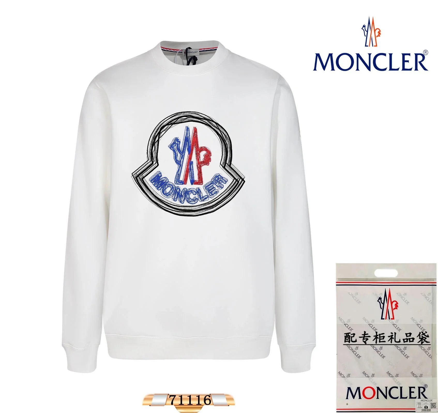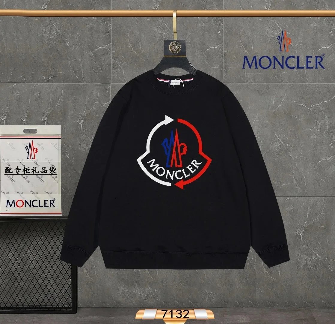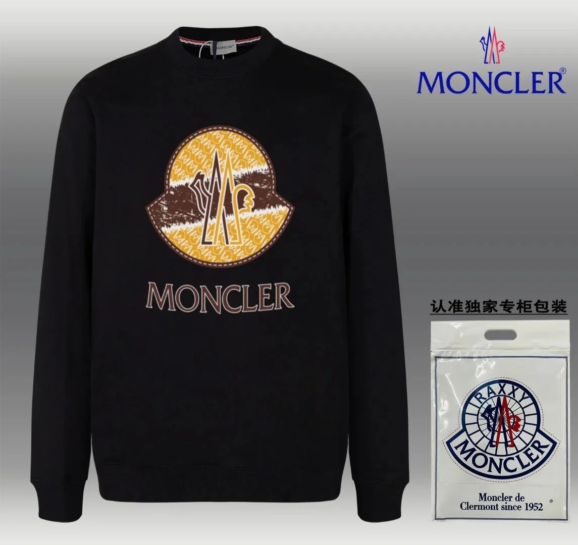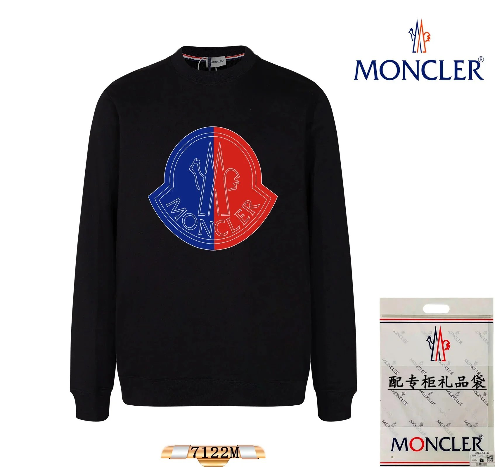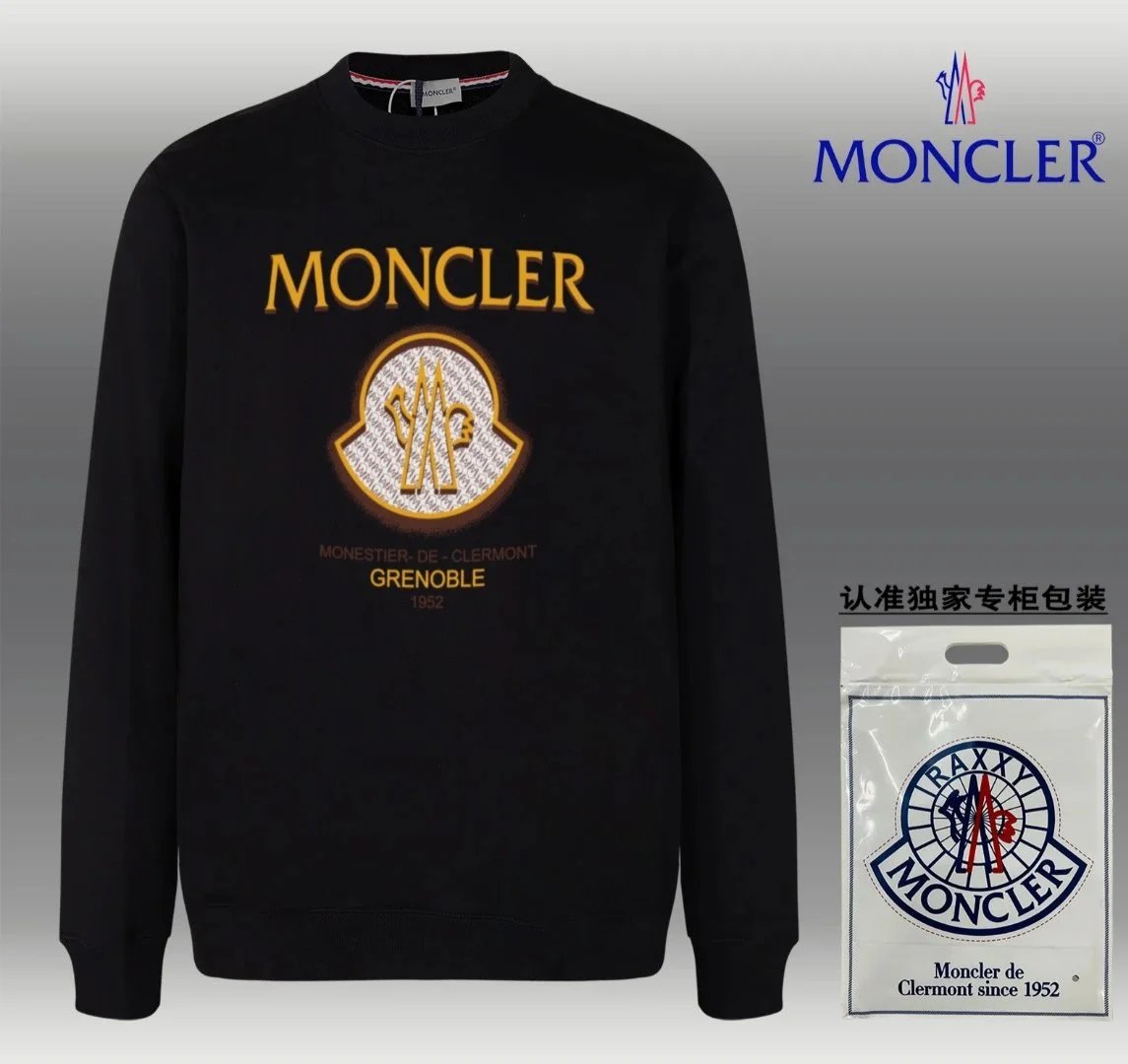 Elevate your wardrobe with this authentic Moncler black crewneck sweatshirt featuring a bold embroidered logo. Crafted for comfort and style.