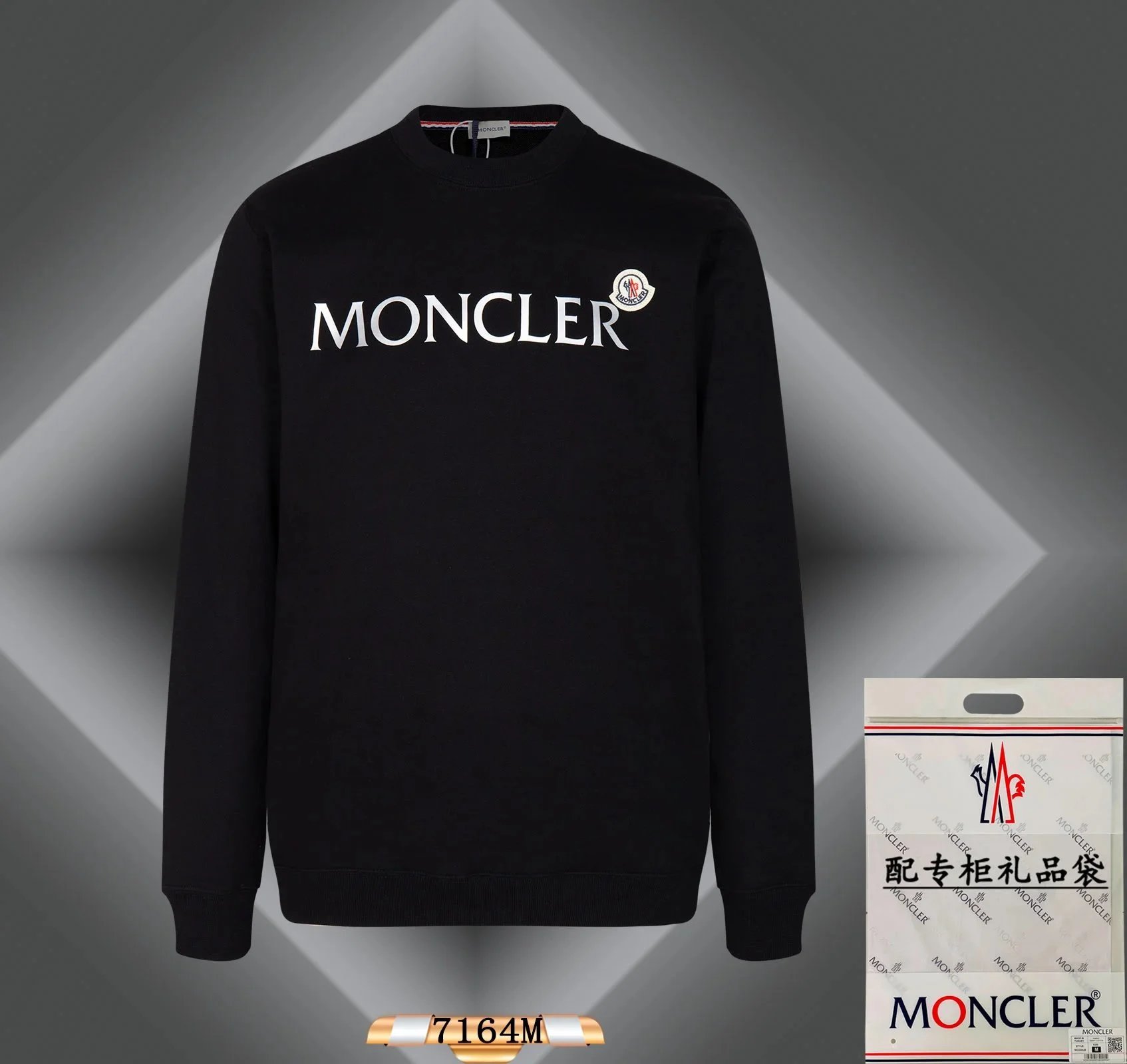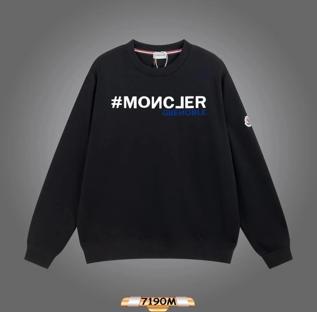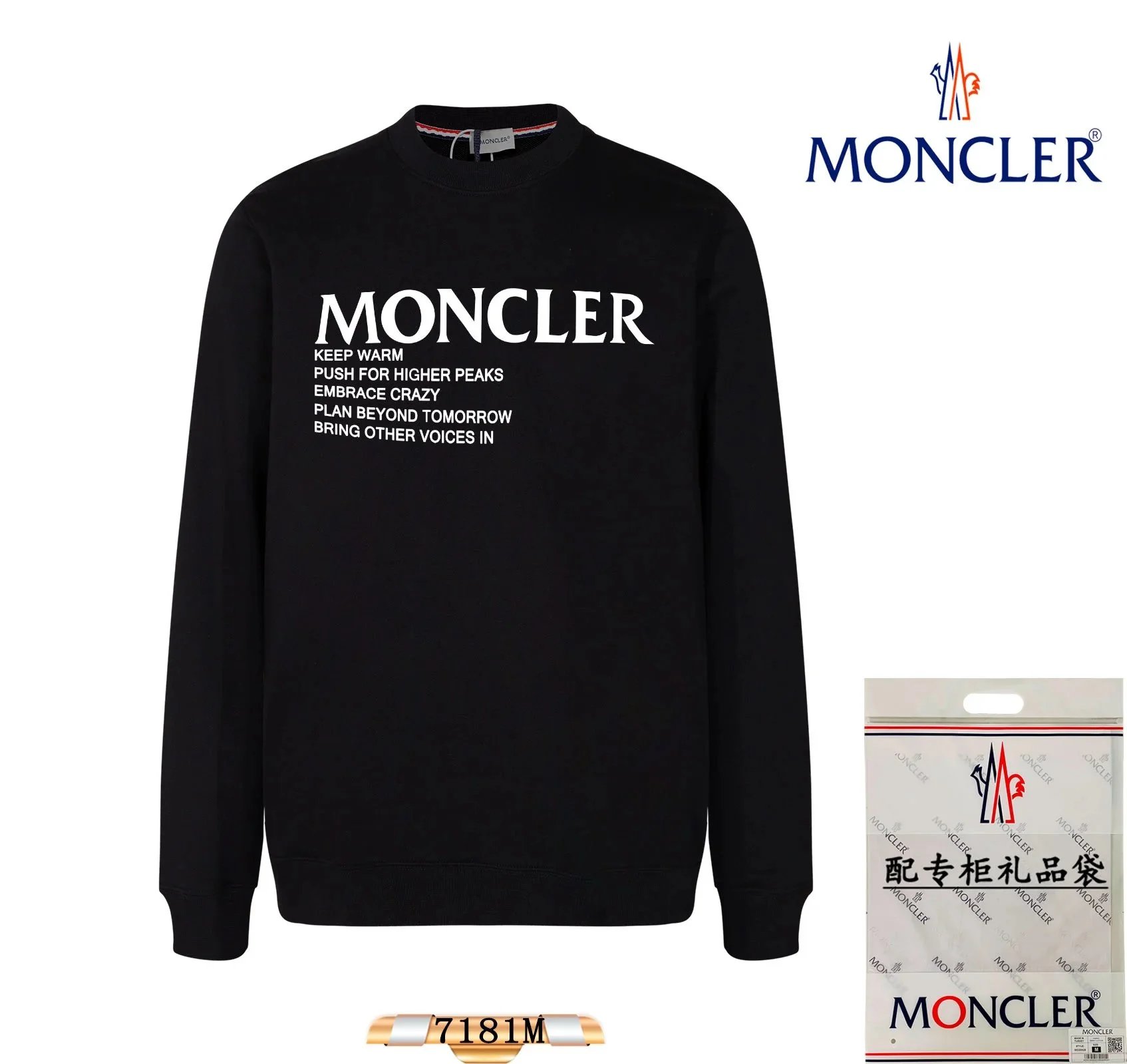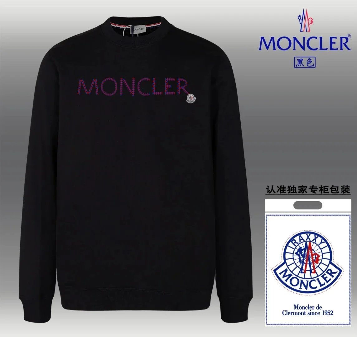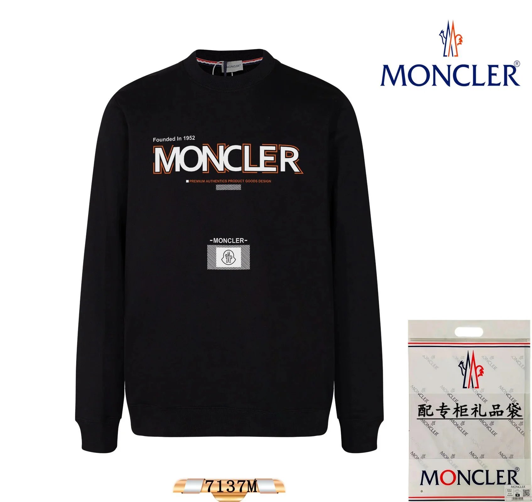 Elevate your casual wardrobe with this premium Moncler black sweatshirt featuring bold stacked logo graphics and 'Founded in 1952' text. Crafted for comfort and style.