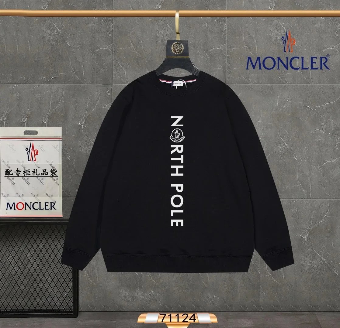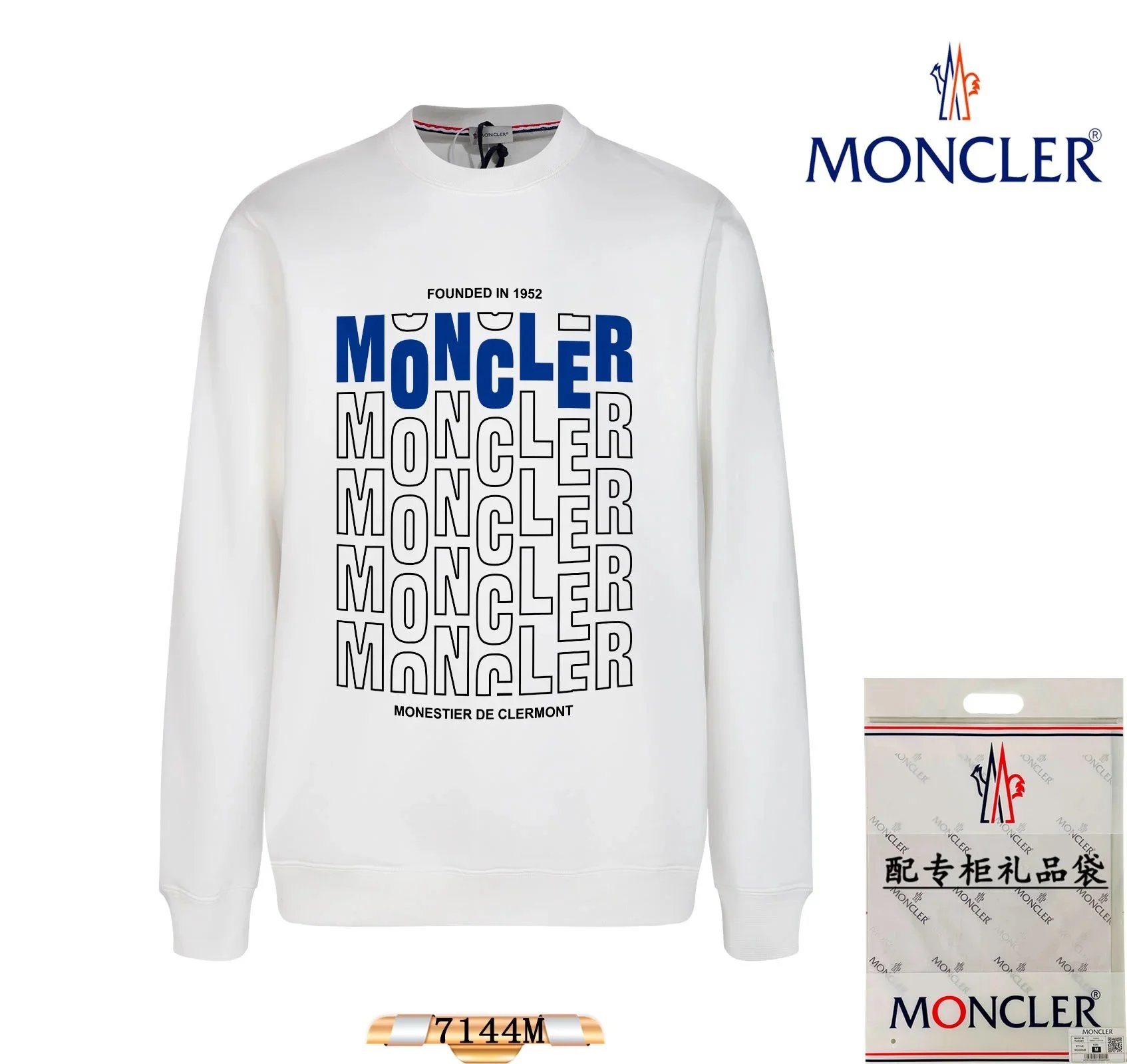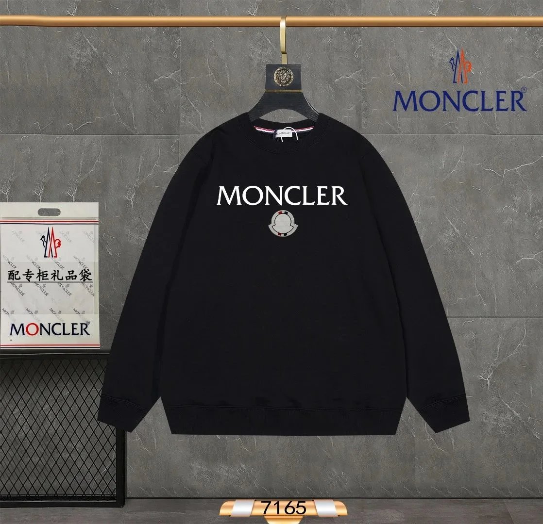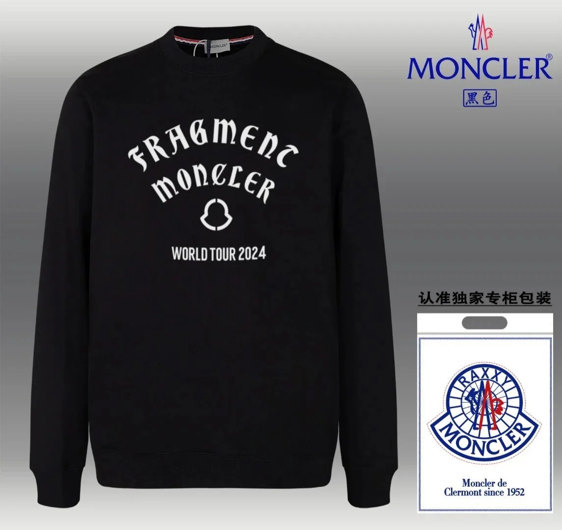 Elevate your casual wardrobe with this premium Moncler black sweatshirt featuring bold stacked logo graphics and 'Founded in 1952' text. Crafted for comfort and style.