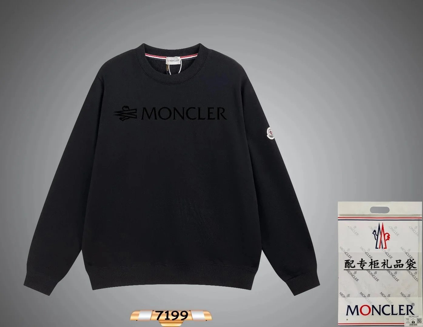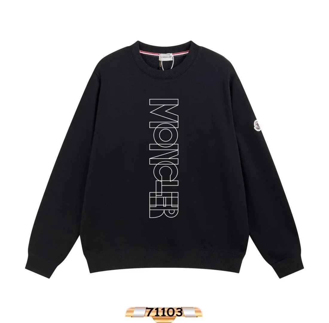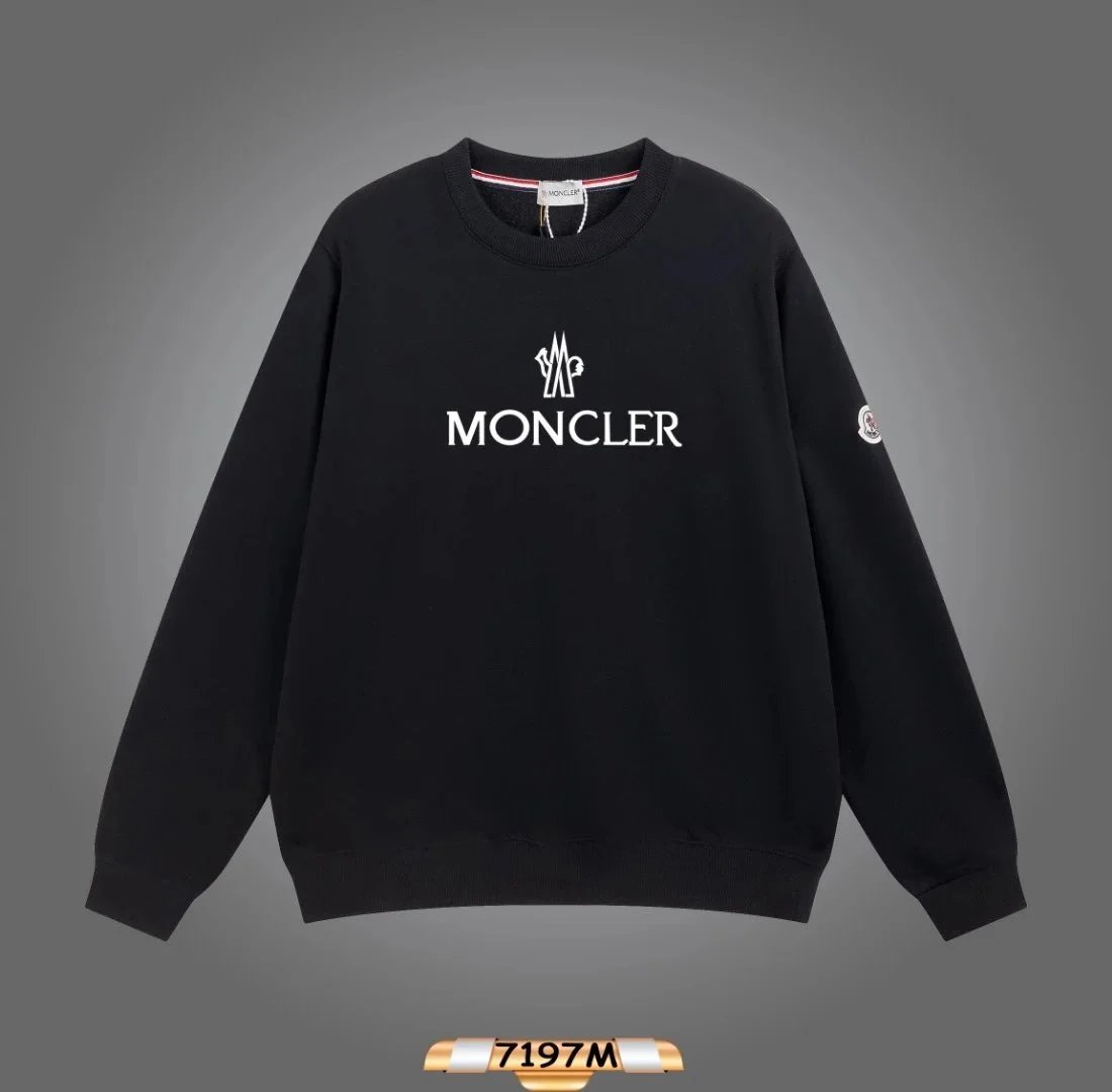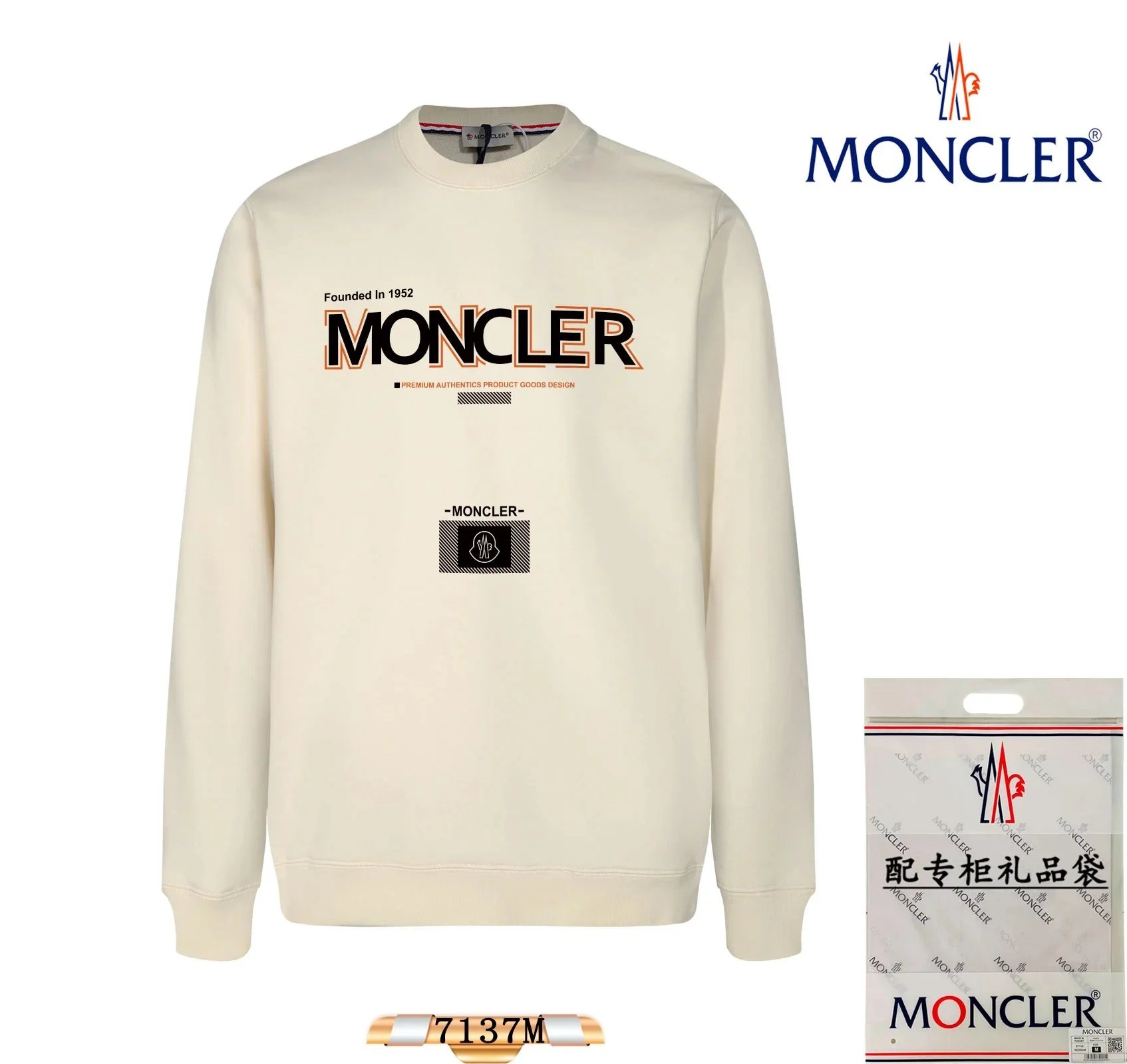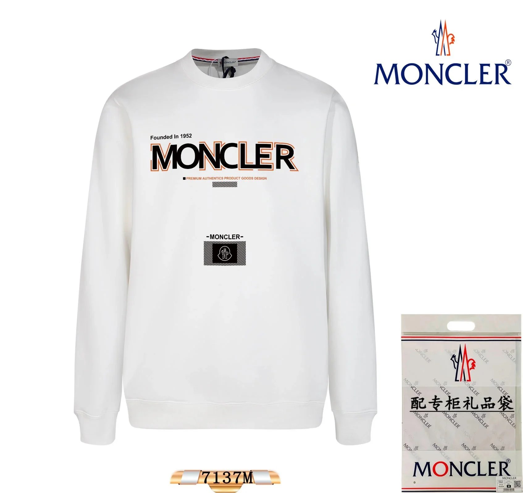 Elevate your casual wardrobe with this premium Moncler black sweatshirt featuring bold stacked logo graphics and 'Founded in 1952' text. Crafted for comfort and style.