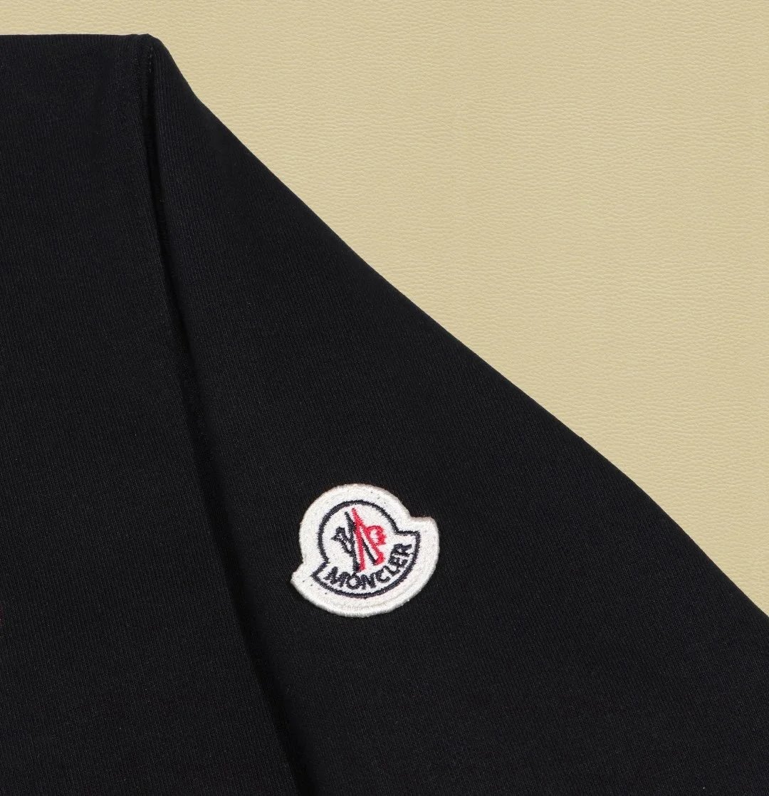 Elevate your wardrobe with this authentic Moncler black crewneck sweatshirt featuring the iconic embroidered logo patch for timeless luxury and comfort.