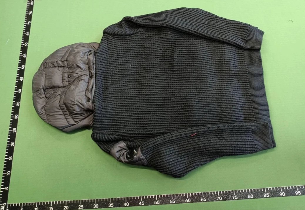 Stylish Moncler black puffer jacket featuring a quilted design with ribbed knit sleeves and a hood. Perfect for cold weather with a modern, layered look.