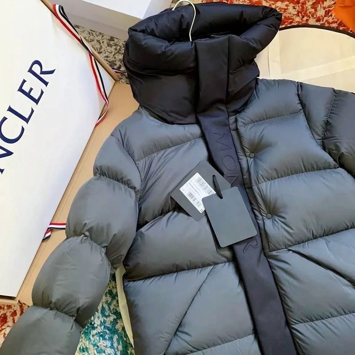 Premium Moncler down jackets featuring a classic hooded design in black, navy, and white. Ideal for cold weather with superior warmth and timeless style.