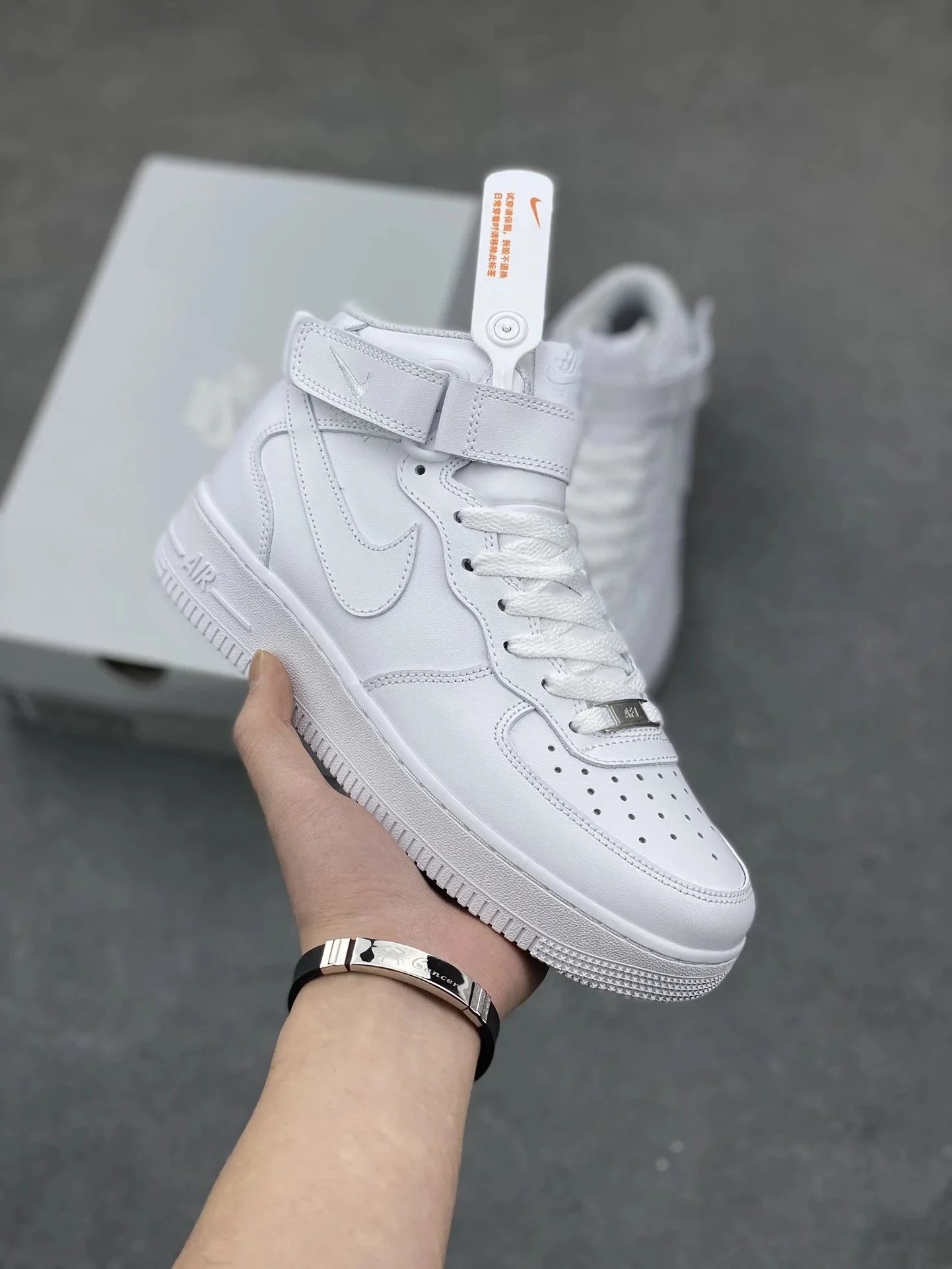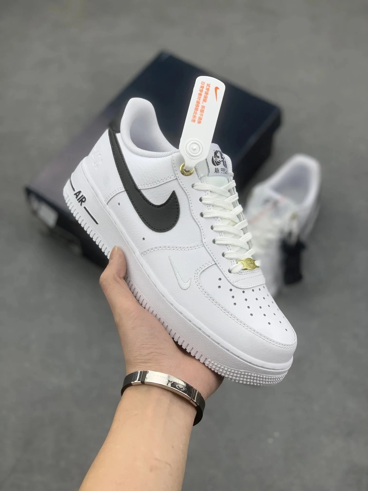 Authentic Nike Air Force 1 sneakers in classic low and high cuts. Available in white, black, and brown for versatile everyday style.