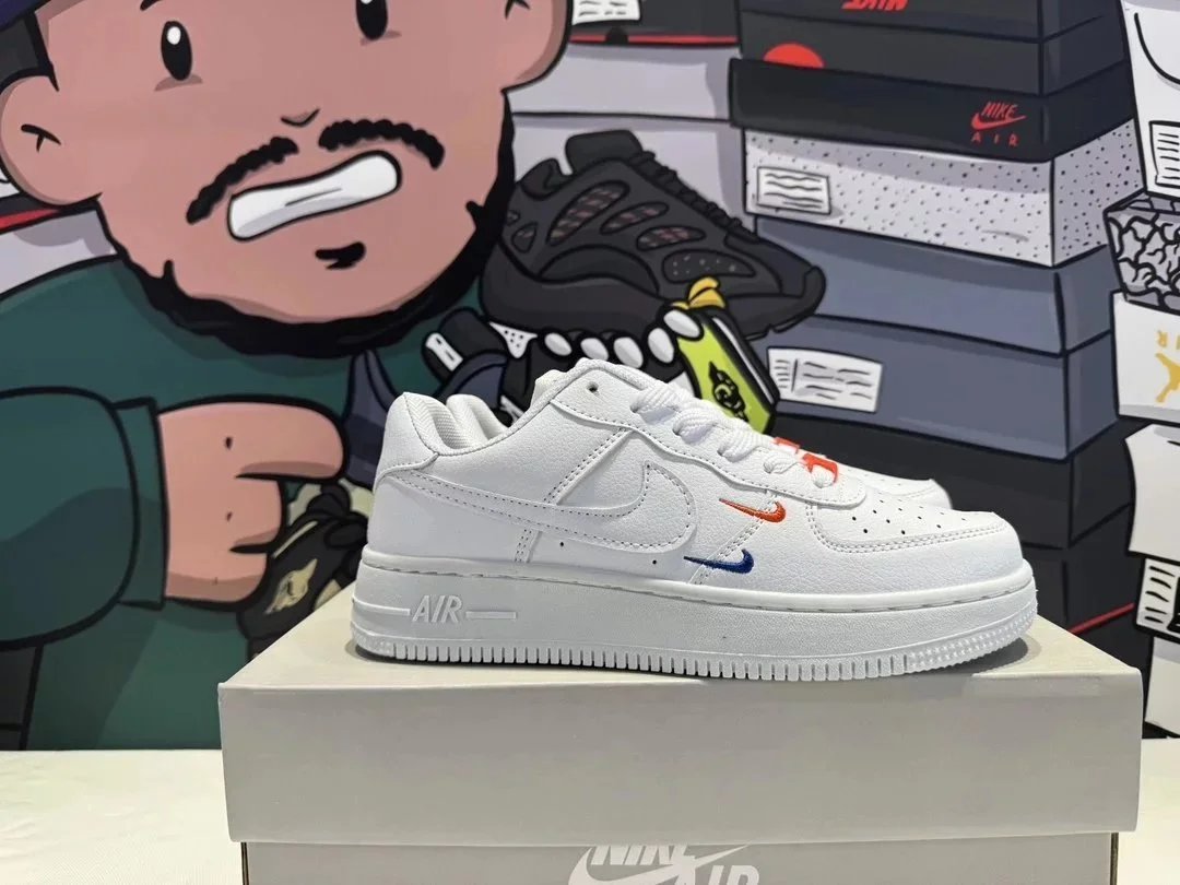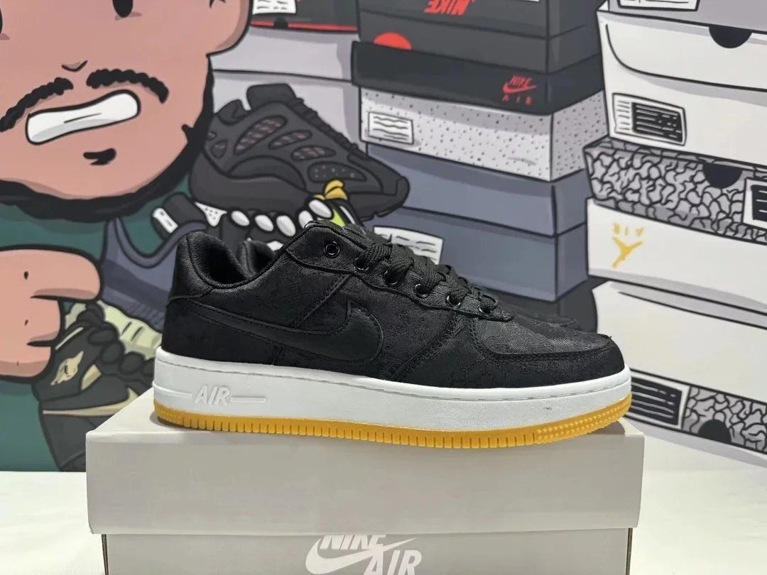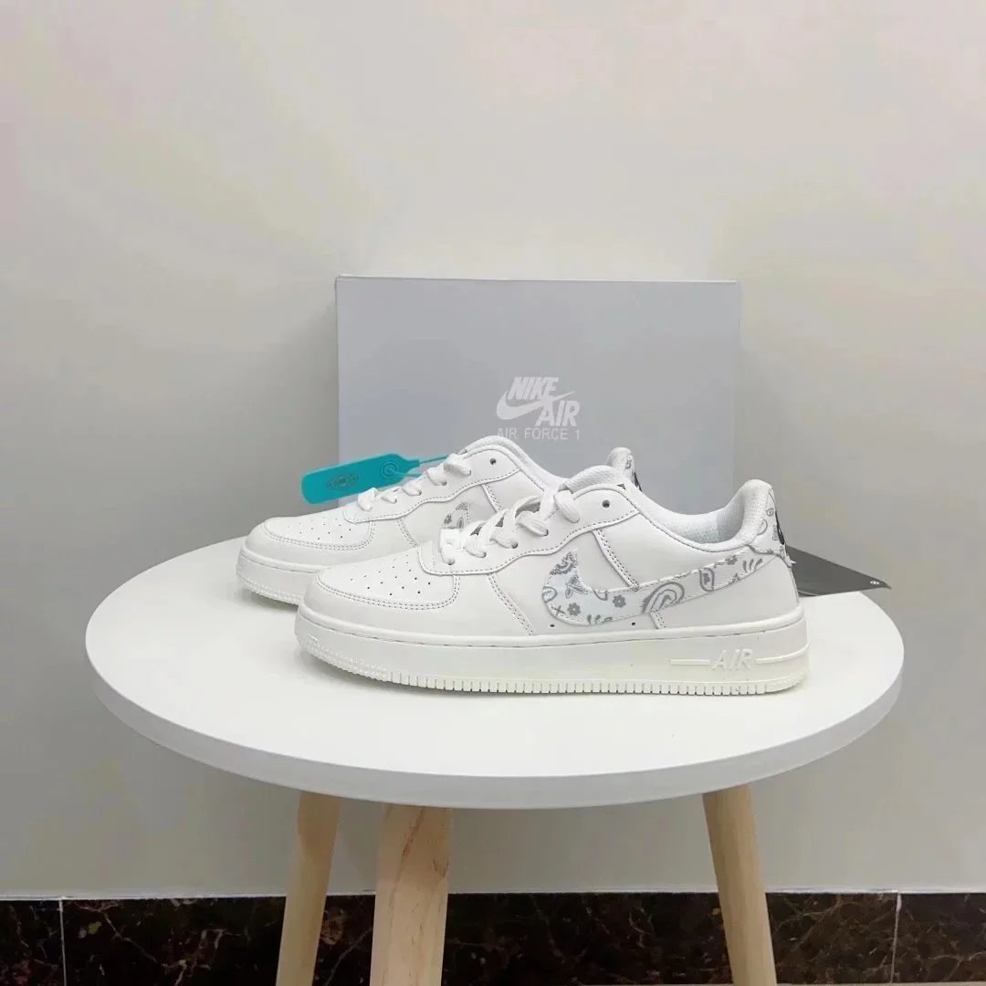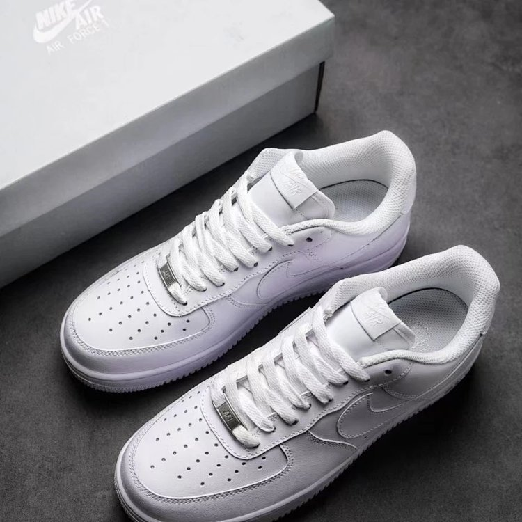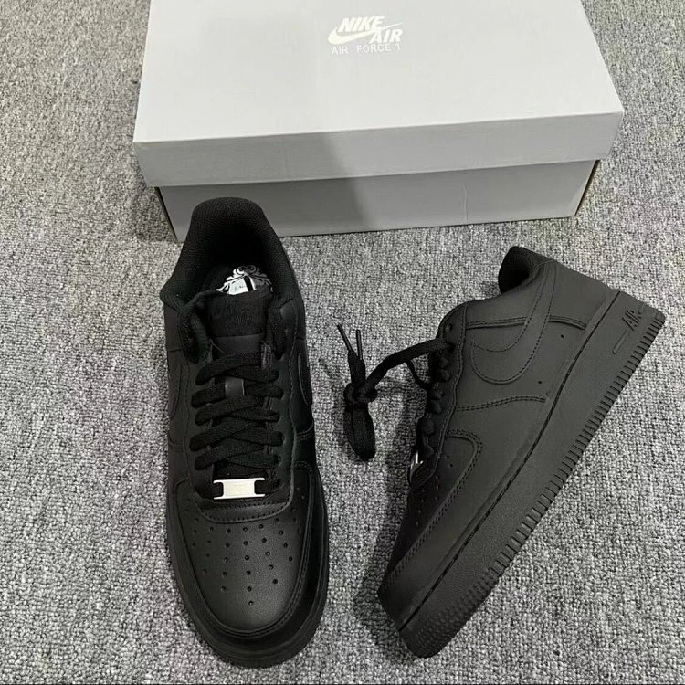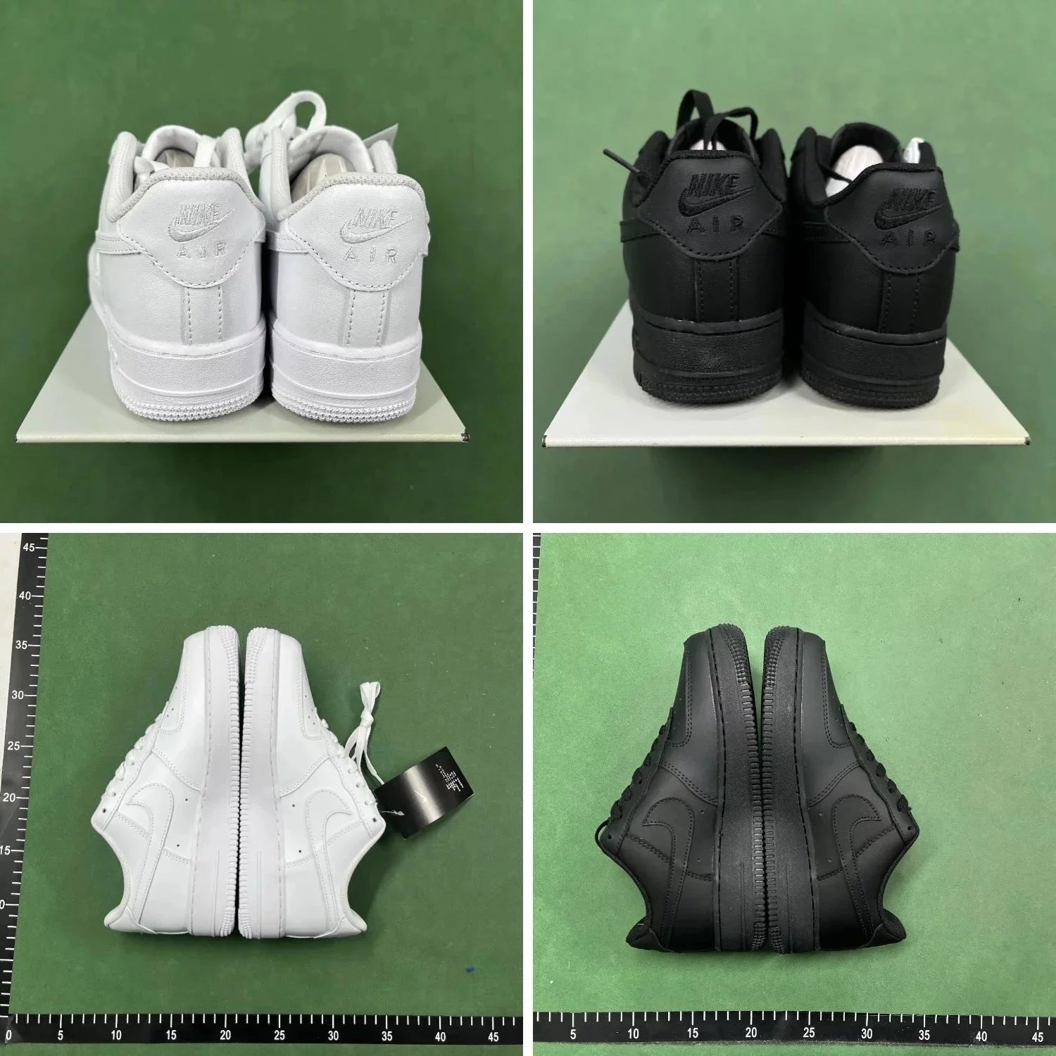 Classic Nike Air Force 1 Low sneakers in crisp white and all-black colorways. Perfect for everyday wear with timeless style and comfort.