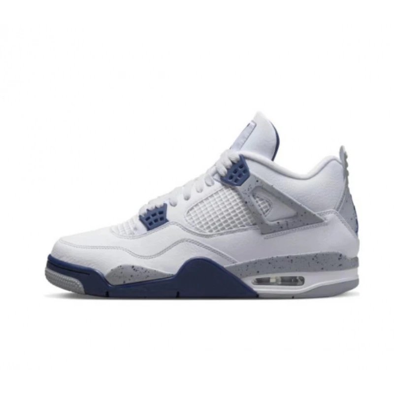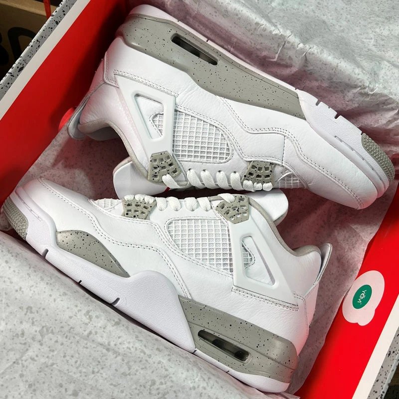 Iconic Nike Air Jordan 4 in White Cement colorway featuring mesh panels and visible Air unit for style and comfort.