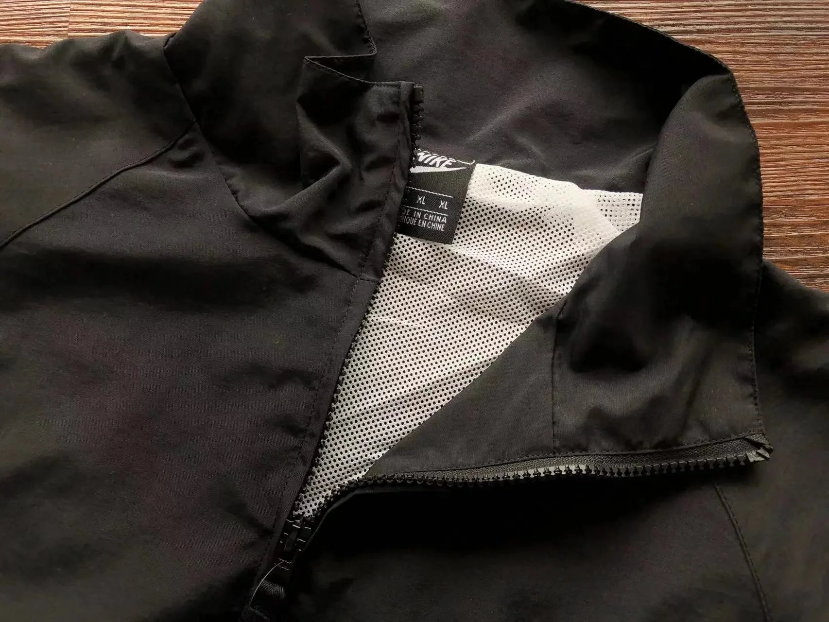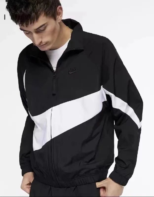 Stylish and functional Nike black track jacket featuring a full-zip front, ribbed cuffs, and the iconic Swoosh logo. Perfect for casual wear or active lifestyles.