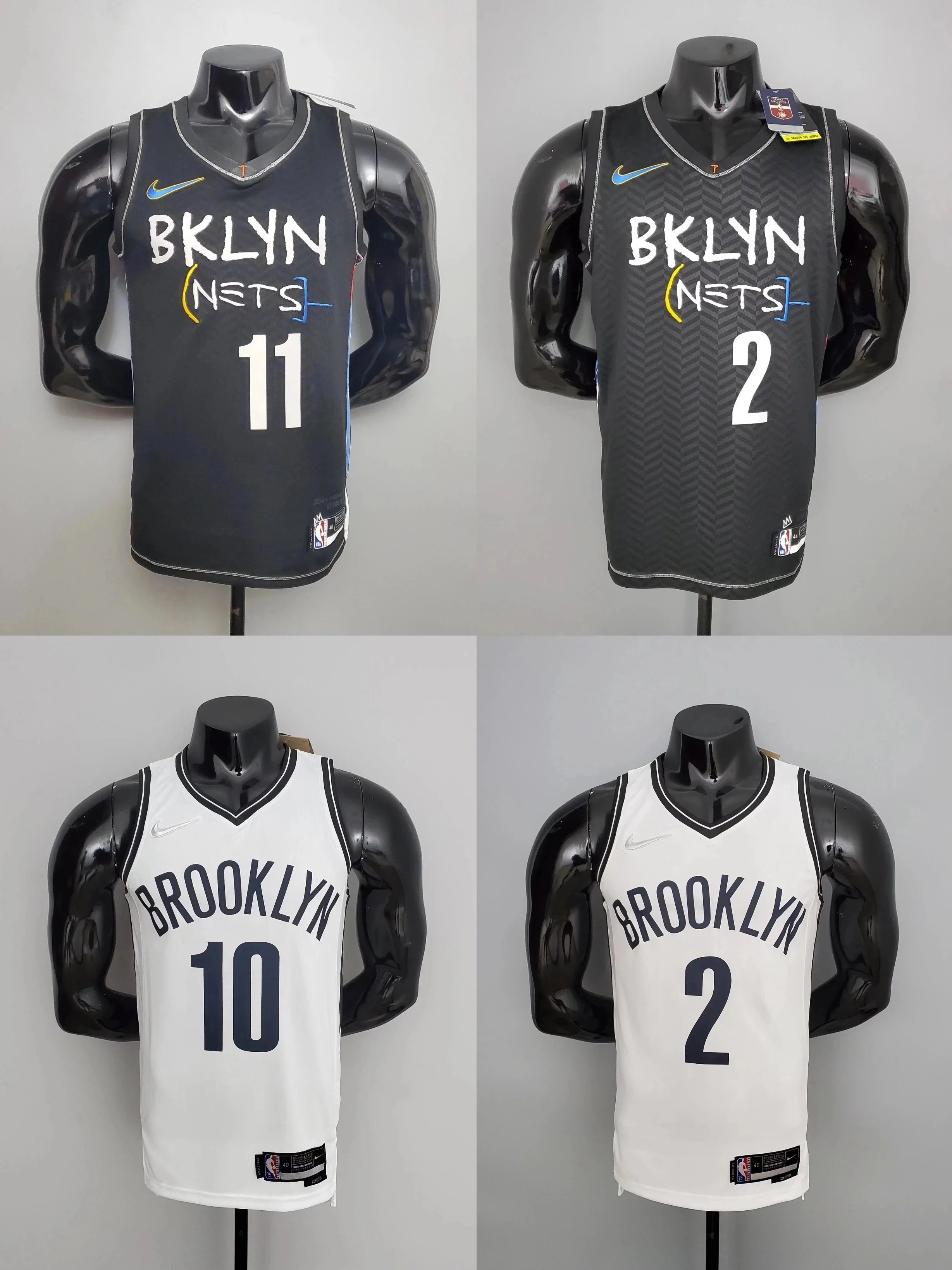 Authentic Brooklyn Nets basketball jersey in black with a distinctive zigzag pattern and stylized 'BKLYN (NETS)' lettering. Features player number 2 and official NBA branding.