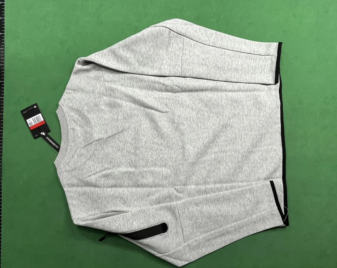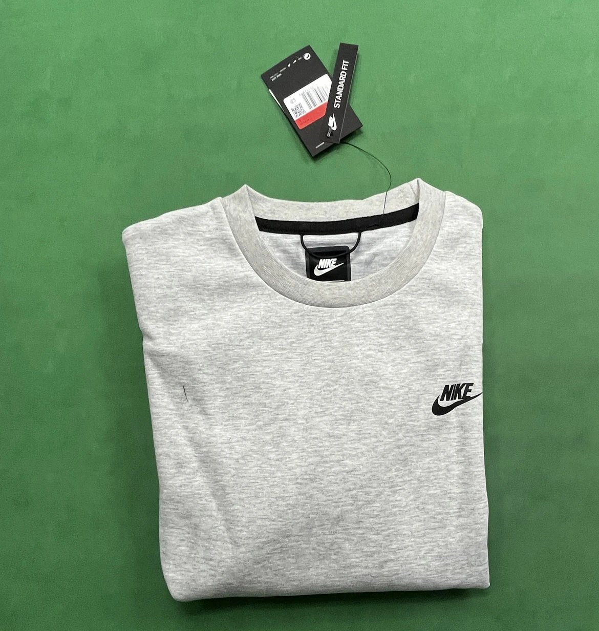 Comfortable Nike loose fit grey crewneck sweatshirt with black trim detailing and classic Swoosh logo. Perfect for casual or active wear.