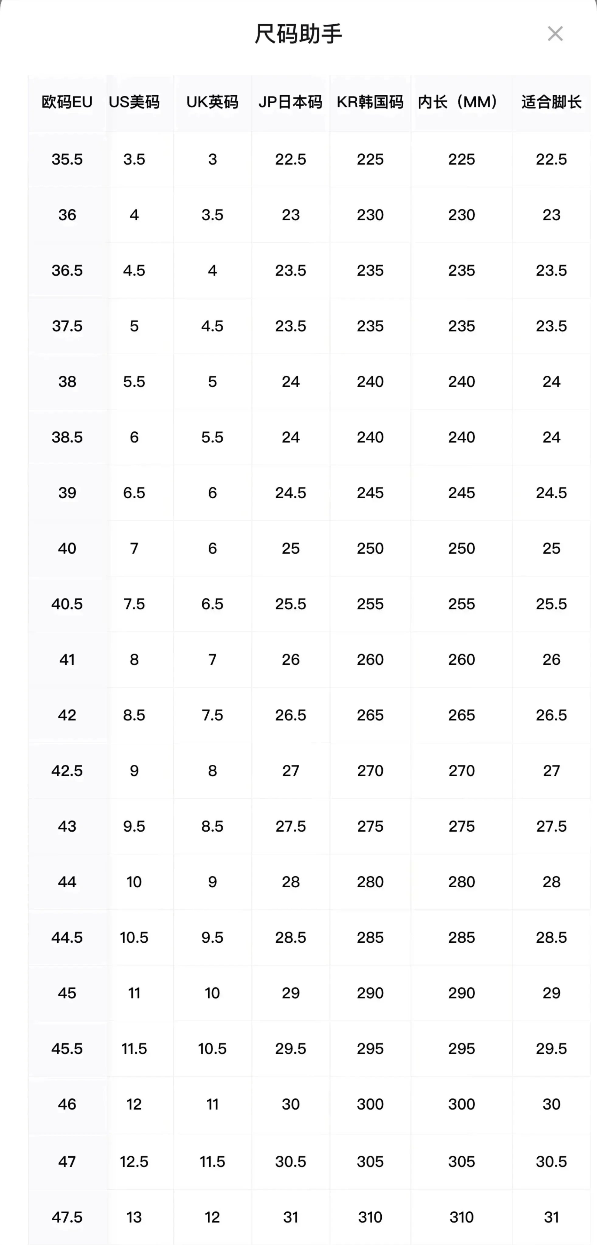 鞋子尺码2