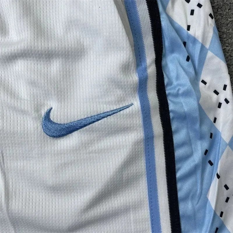 Official Nike UNC Tar Heels basketball shorts in multiple colorways including white, light blue, navy, and two-tone designs. Featuring the iconic NC logo and breathable performance fabric for active wear.