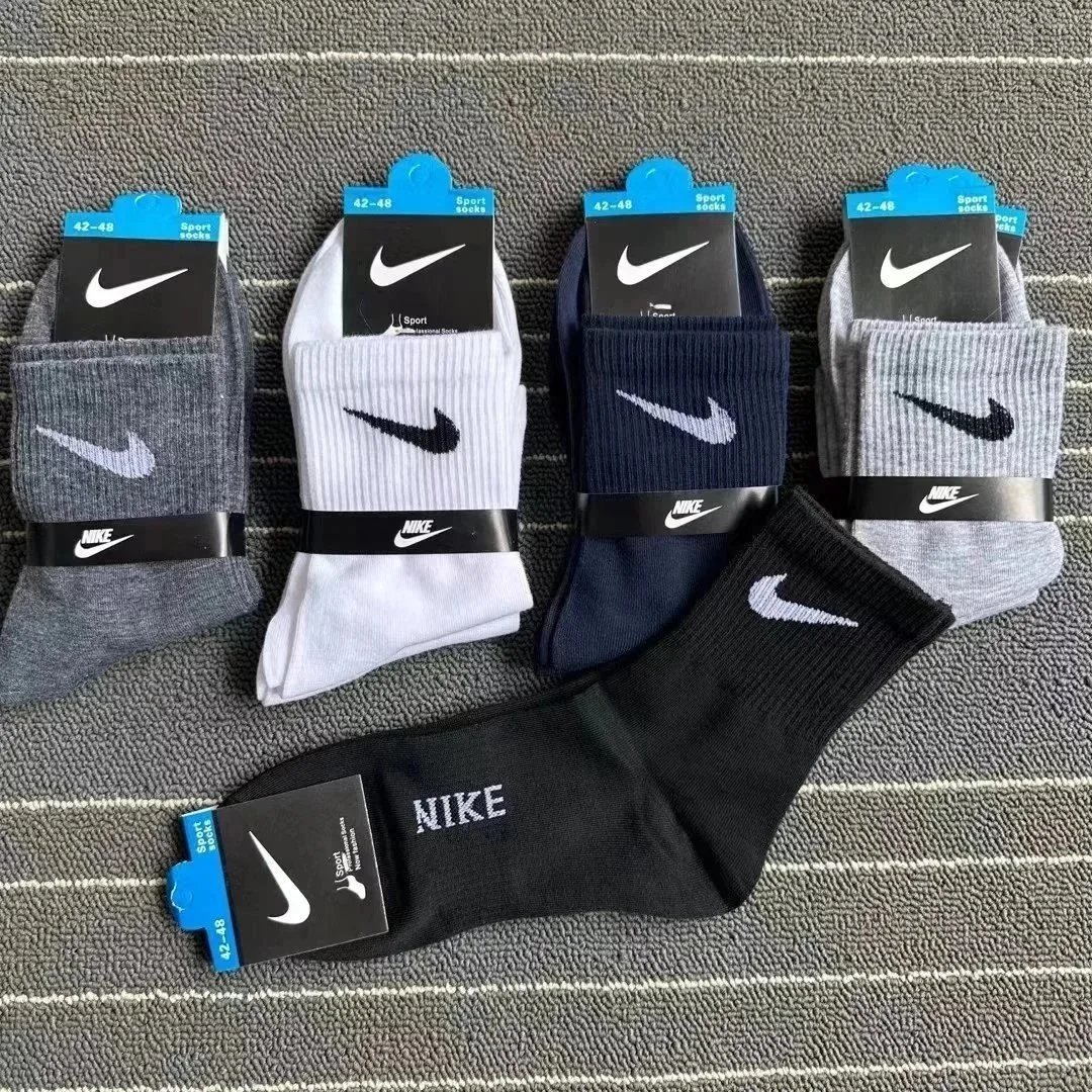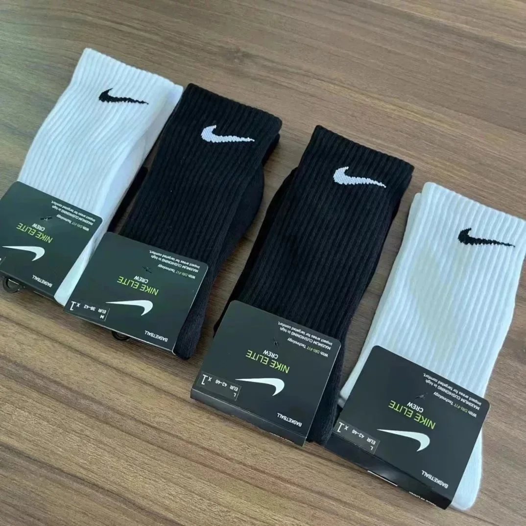 Premium white Nike crew socks featuring bold black Swoosh logo on the side and heel. Ideal for sports, training, or everyday wear with a classic athletic look.