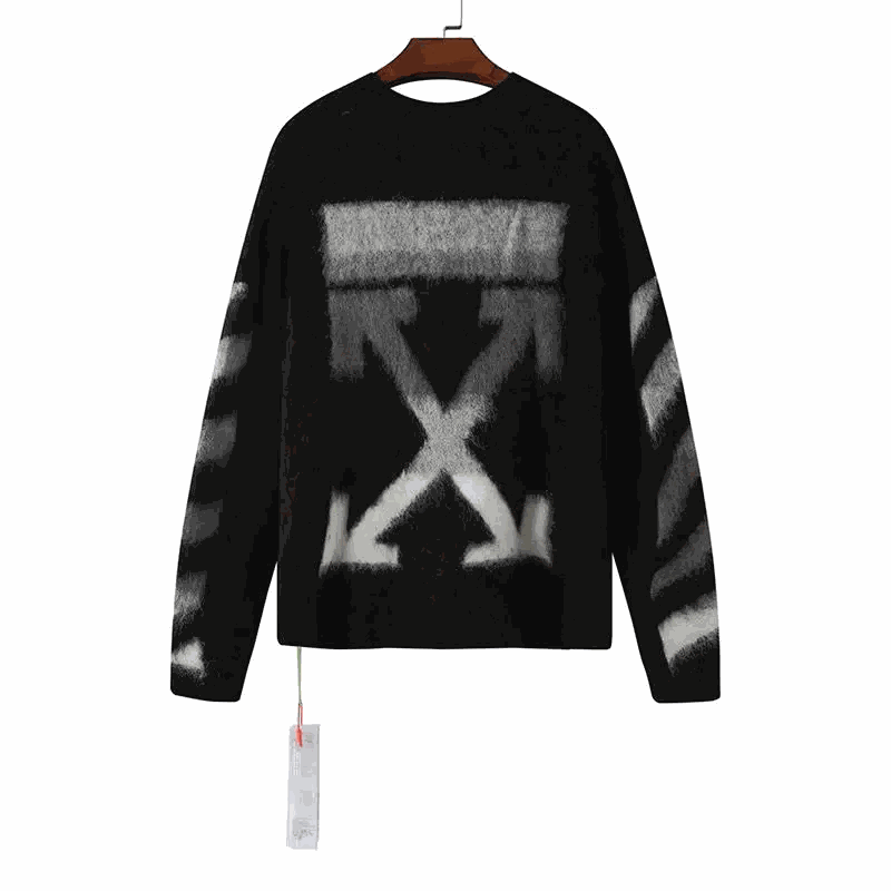 Elevate your streetwear look with this Off-White black sweater featuring a signature faded arrow print and bold contrast detailing on sleeves.