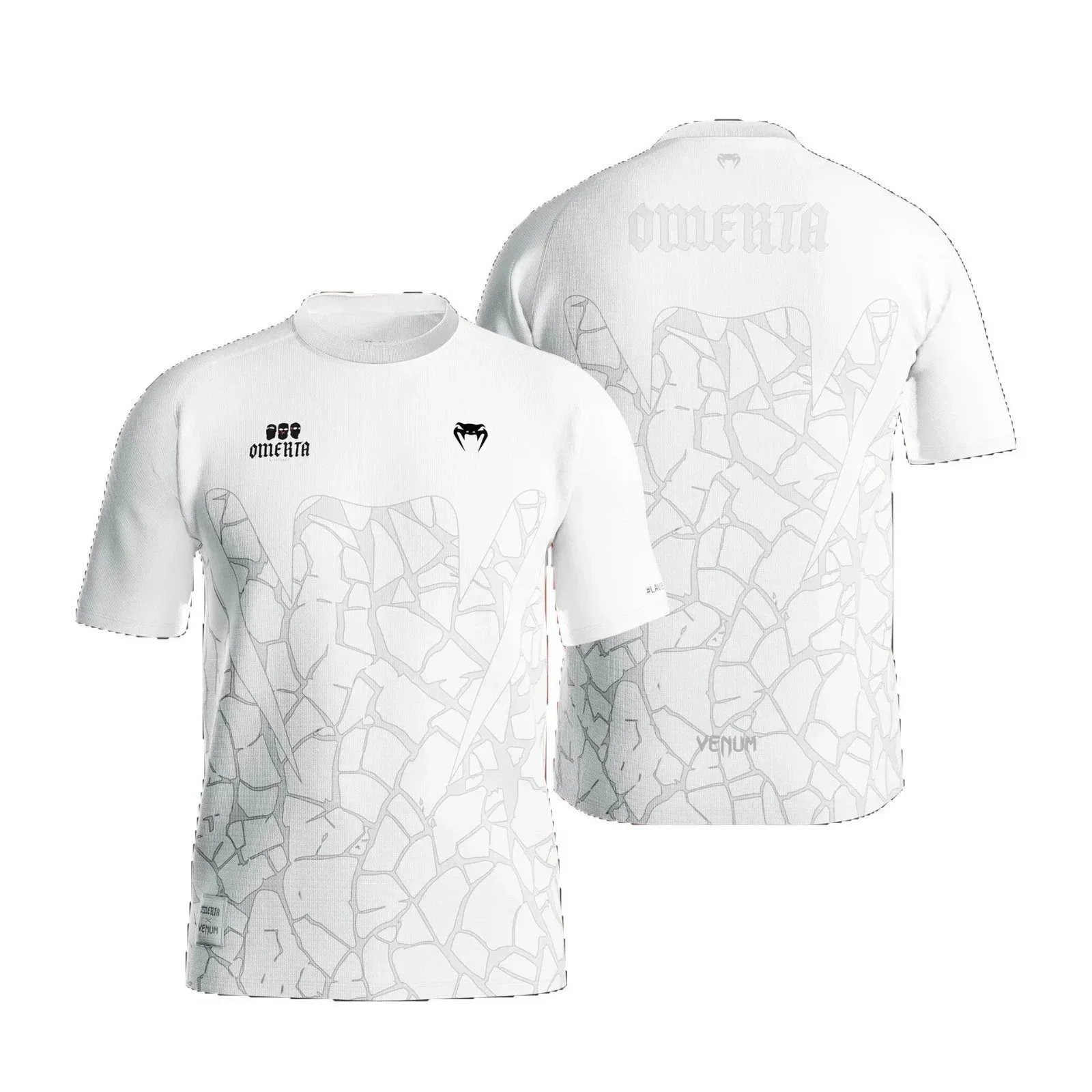 High-performance black and red OMERTA jersey featuring a unique fingerprint texture, bold number 47 on back, and distinctive logo. Ideal for fans and gamers seeking authentic esports-inspired sportswear.