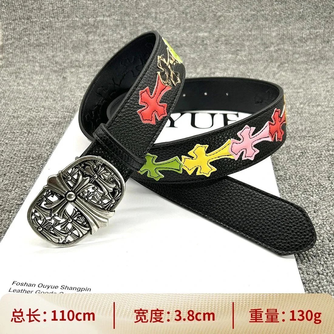 Stylish OUYUE leather belts featuring vibrant cross patterns, metal studs, and ornate buckles. Perfect for adding an edgy, punk-inspired look to any outfit.