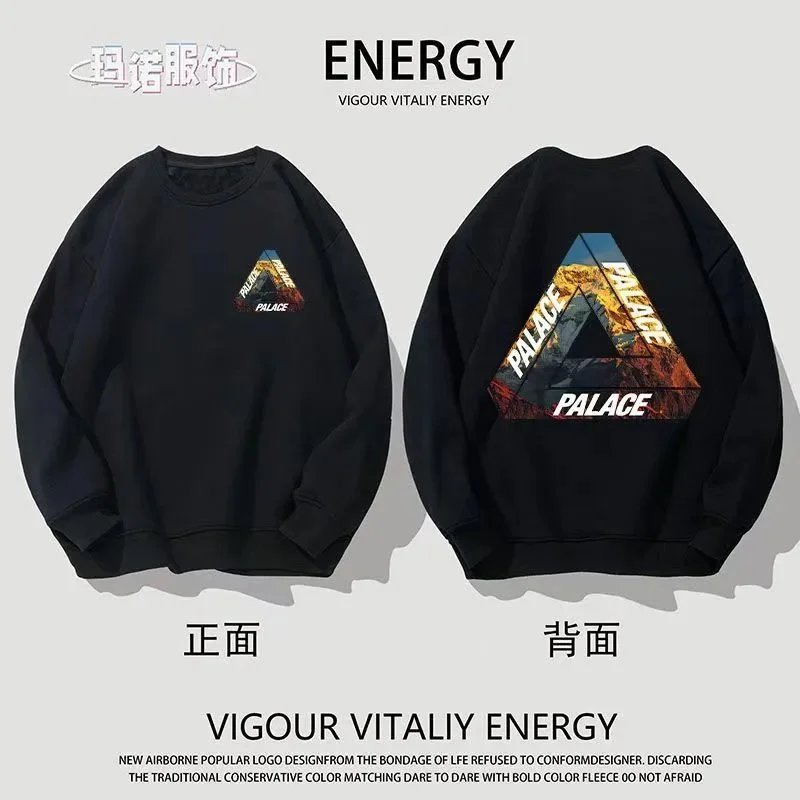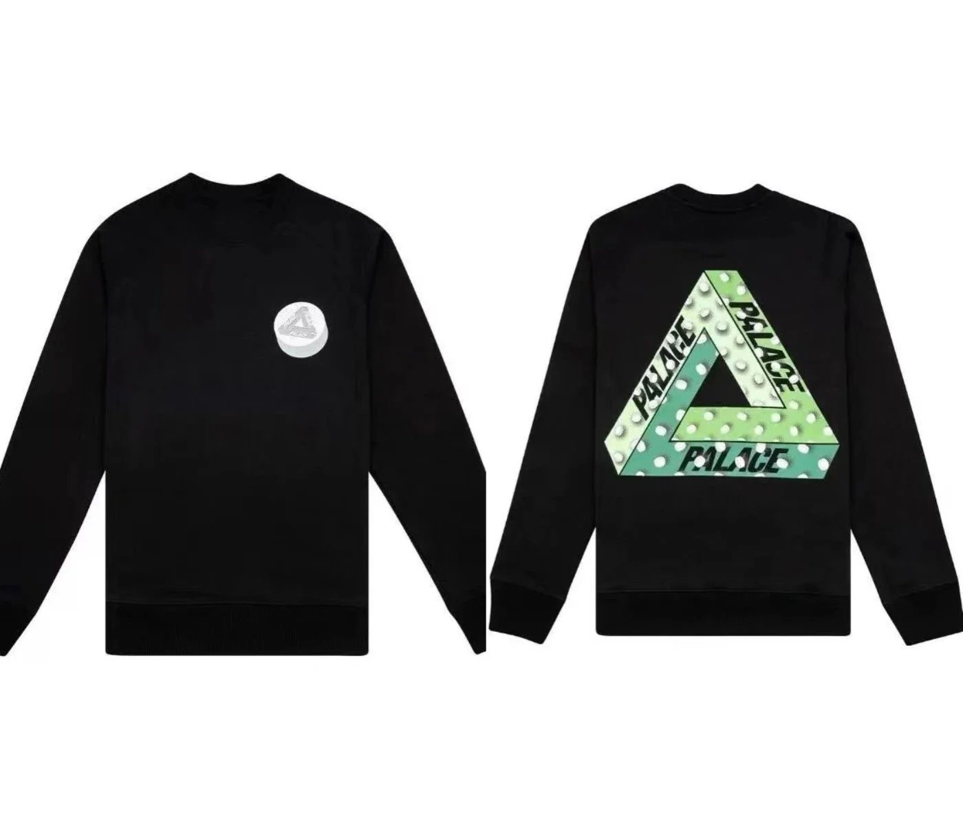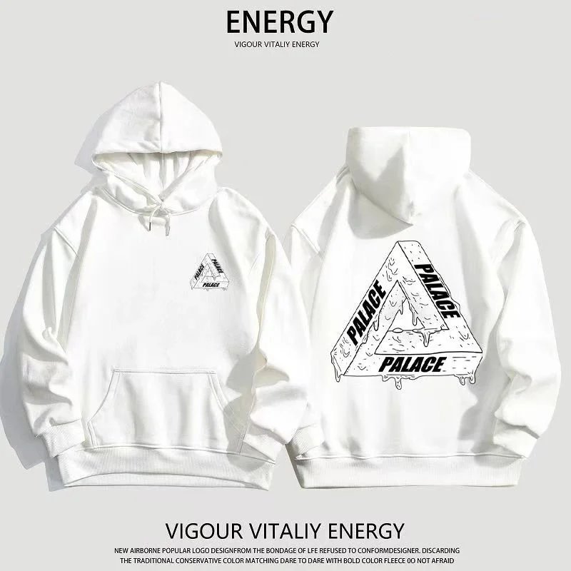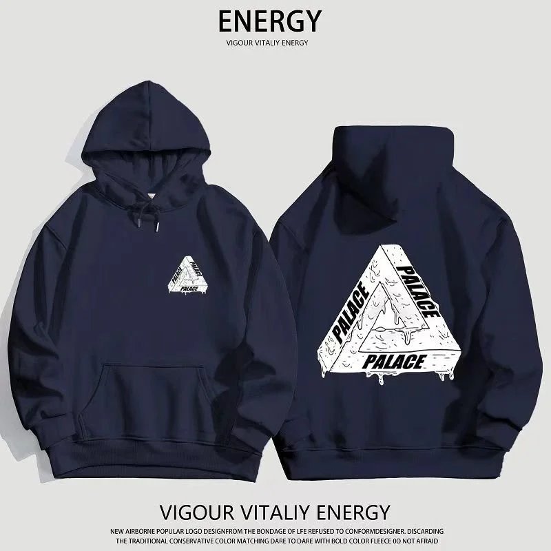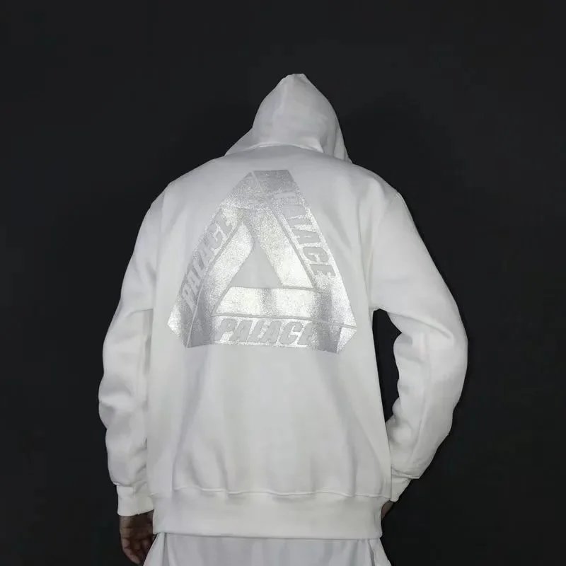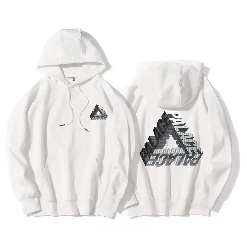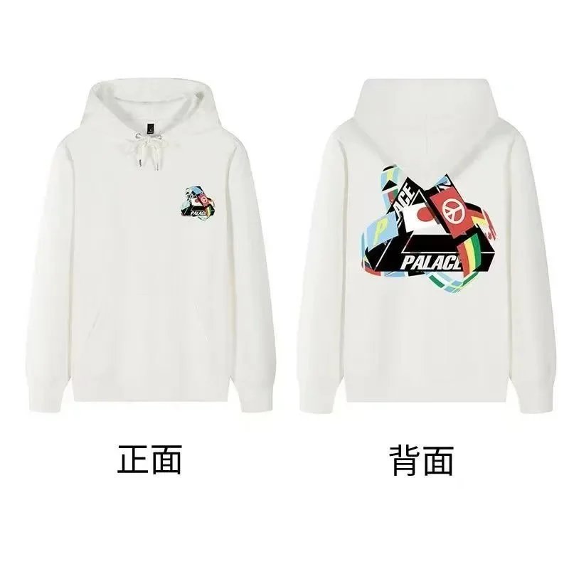 Black Palace Tri-Ferg hoodie featuring the iconic multicolor triangle logo on front and back. Perfect for streetwear and skate culture.