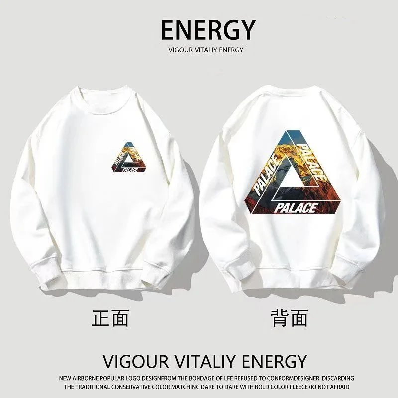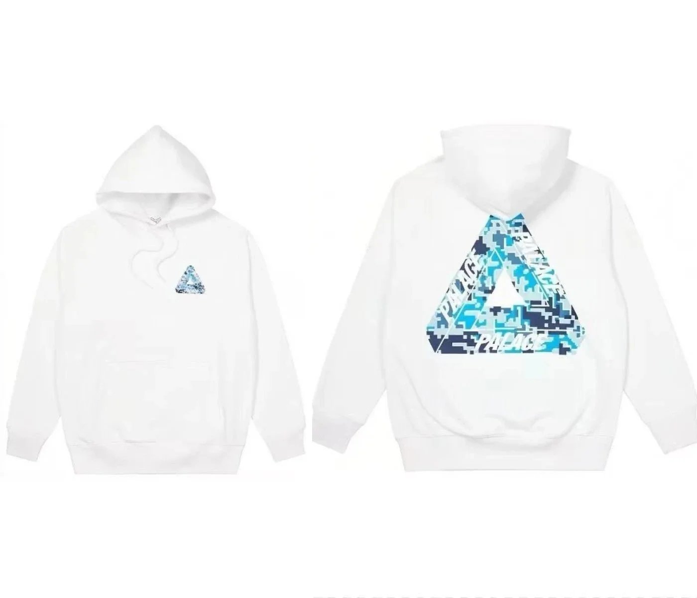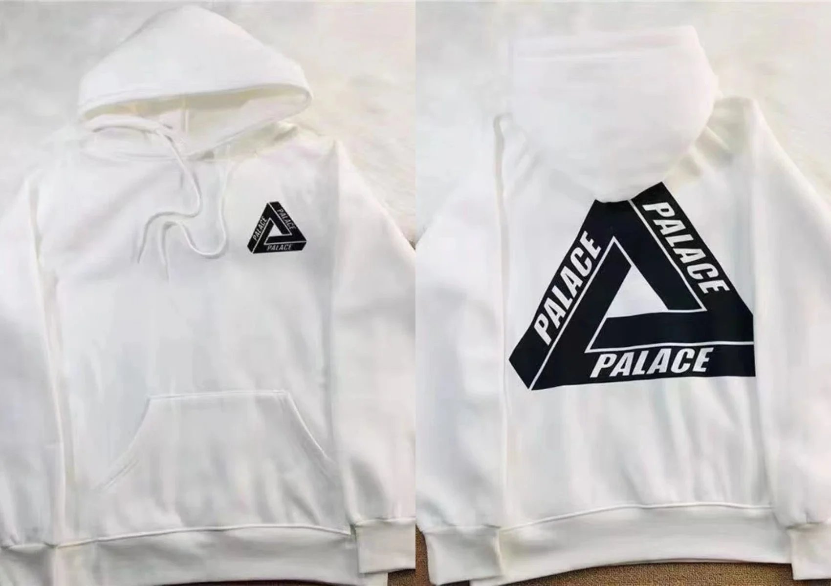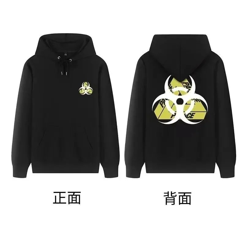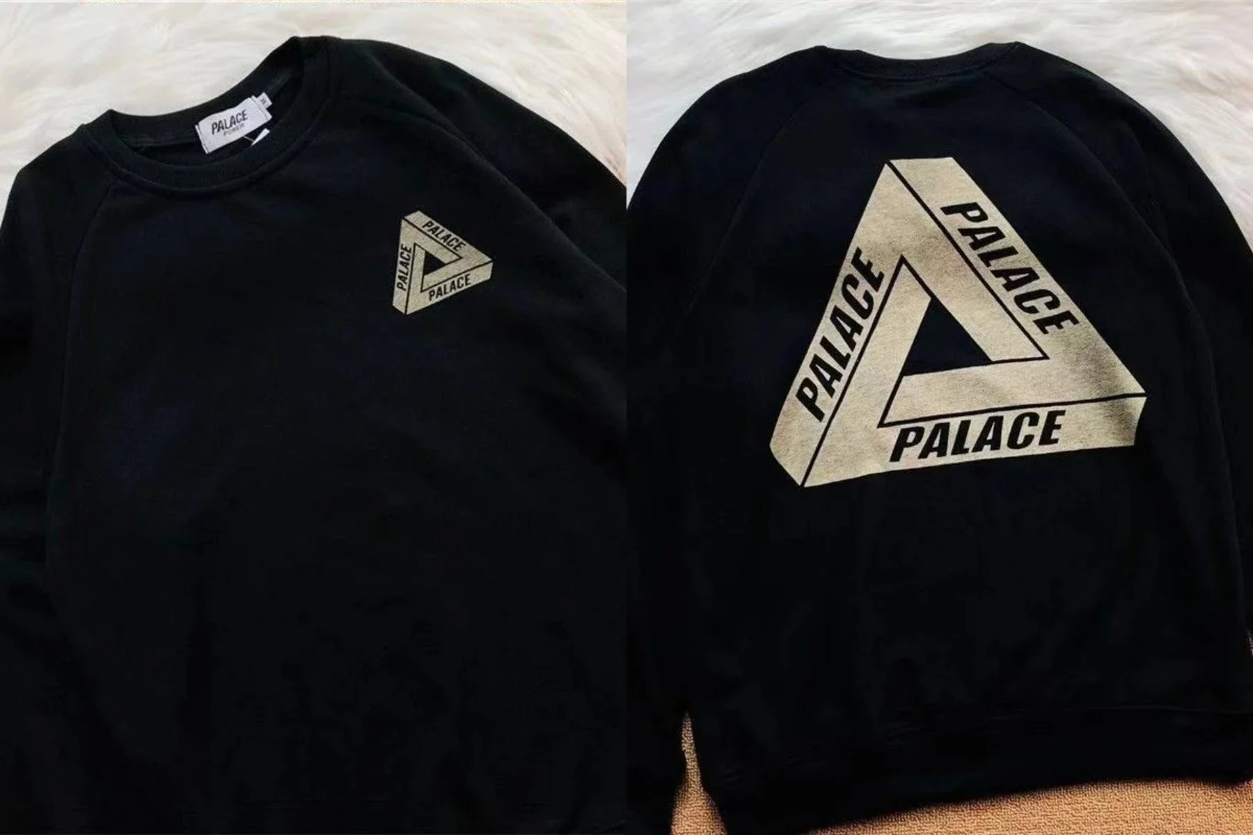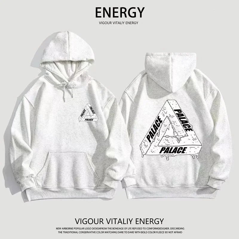 Black Palace Tri-Ferg hoodie featuring the iconic multicolor triangle logo on front and back. Perfect for streetwear and skate culture.