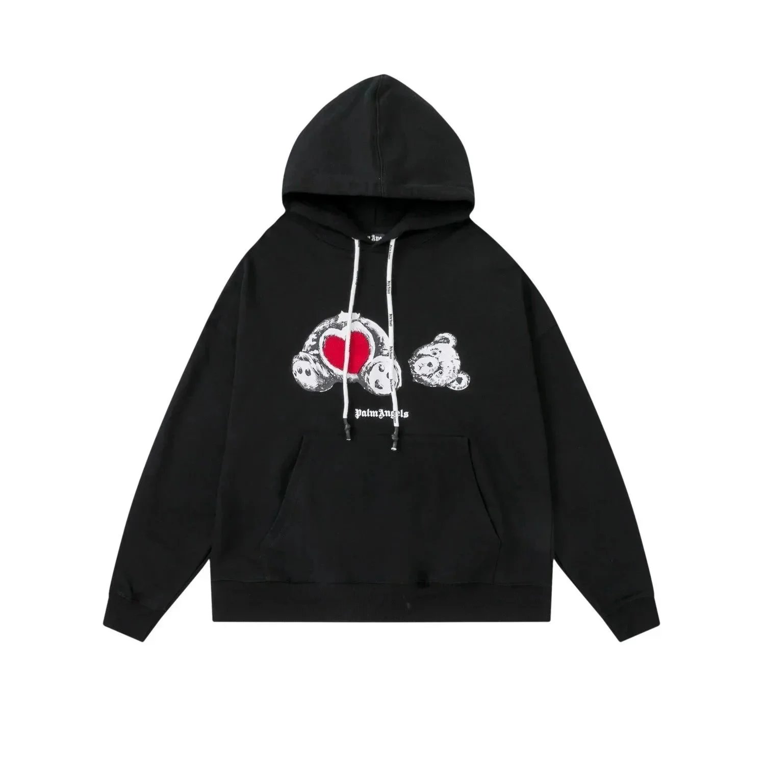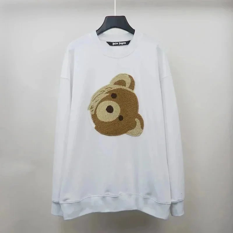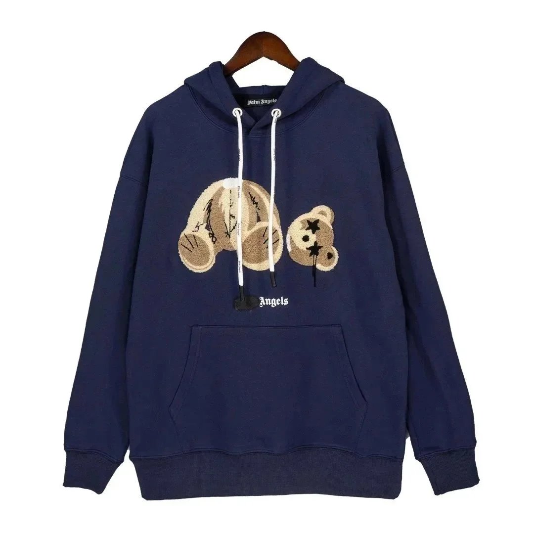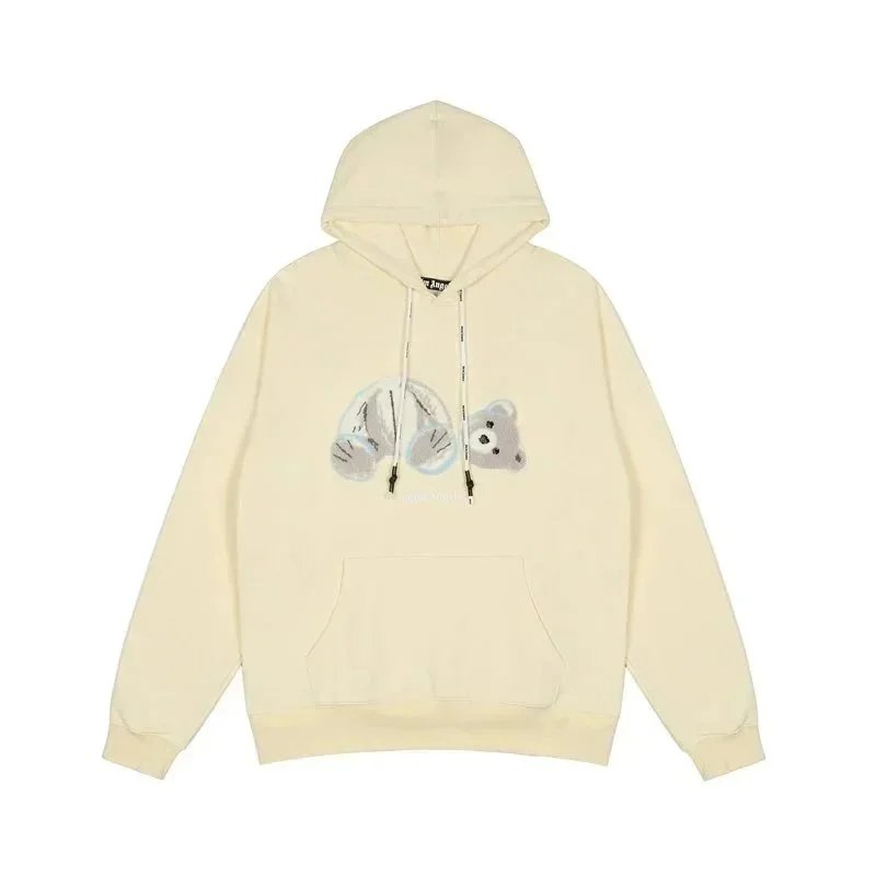 Palm Angels hoodies featuring iconic teddy bear graphics and bold logo prints in black and white. Designed for urban streetwear appeal with premium comfort and distinctive branding.